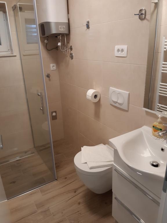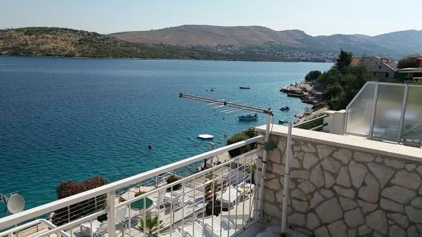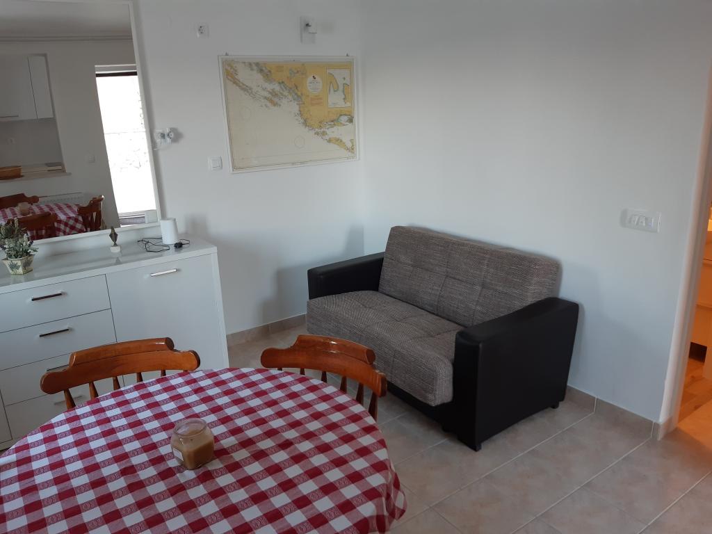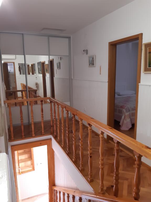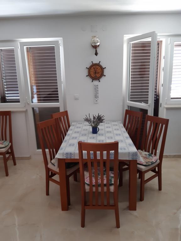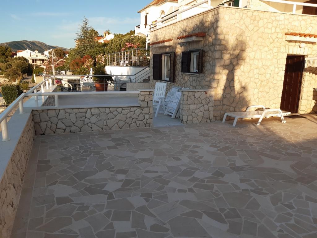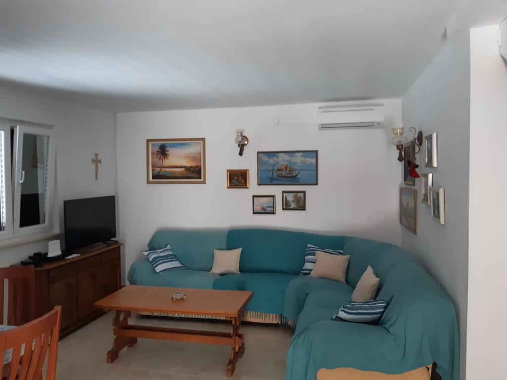 Opłata jest wliczone w cenę.Chociaż dolne mieszkanie (A4) jest najmniejsze i nie może uzyskać więcej gwiazdek w kategoryzacji, jest ulubieńcem gości i wszyscy pozostają na tarasie (100 metrów kwadratowych) dolnego mieszkania w ciągu dnia. W apartamencie znajduje się telewizor z kanałami filmowymi i sportowymi, klimatyzacja, internet i pralka, kuchnia, łazienka i dwie sypialnie dla 4 osób. Górny apartament (A8) dla 8 osób z klimatyzacją i dostępem do Internetu jest podzielony na dwie jednostki, dolną i górną. Dolna jednostka ma duży taras (45 metrów kwadratowych), telewizor z kanałami filmowymi i sportowymi. pralka, łazienka, kuchnia i pokój z dwoma łóżkami, a górna jednostka ma trzy sypialnie dla 6 osób, kuchnię i łazienkę i duży balkon (16 metrów kwadratowych) z pięknym widokiem na morze.
