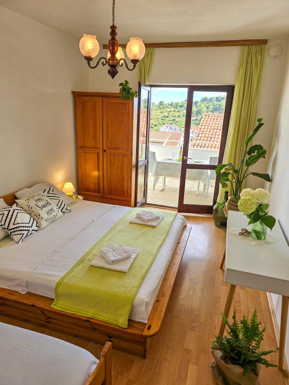 Znajdujemy się na wyspie Hvar, w spokojnej części miasta Hvar, tylko 10-15 minut spacerem od centrum miasta lub 5 minut samochodem. Znajdujemy się kilka minut spacerem od małego sklepu, w którym można kupić wszystko, czego potrzebujesz i od najpiękniejszych plaż w mieście. Plaża ma dwie restauracje, z możliwością wypożyczenia leżaków, parasoli, łodzi, rowerów wodnych i tym podobnych. Nasz dom rodzinny ma duży taras z ogrodem i kominkiem, z którego można korzystać. Posiadamy również prywatny parking. Prawie wszystkie nasze apartamenty / pokoje mają widok na morze, wyspy Vis i Korcula oraz wyspy Pakleni. Pościel, ręczniki (duże i małe), opłata klimatyczna, zużycie prądu i wody, miejsce parkingowe, urządzenia sanitarne, sprzątanie końcowe, wstęp ze zwierzętami domowymi i internet. Jeśli zdecydujesz się zostać naszym gościem, możemy powitać Cię na nabrzeżu lub w autobusie katamaranowym, w zależności od czasu przyjazdu. Aby uzyskać więcej informacji, skontaktuj się z nami! Dzięki i witaj!