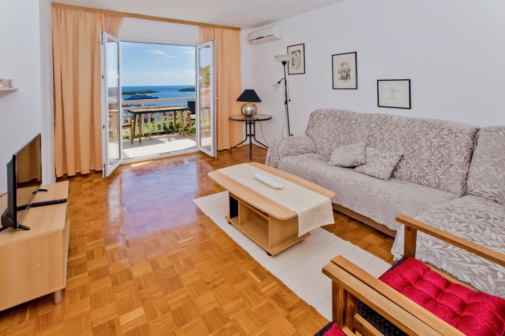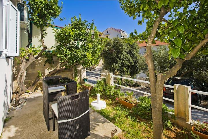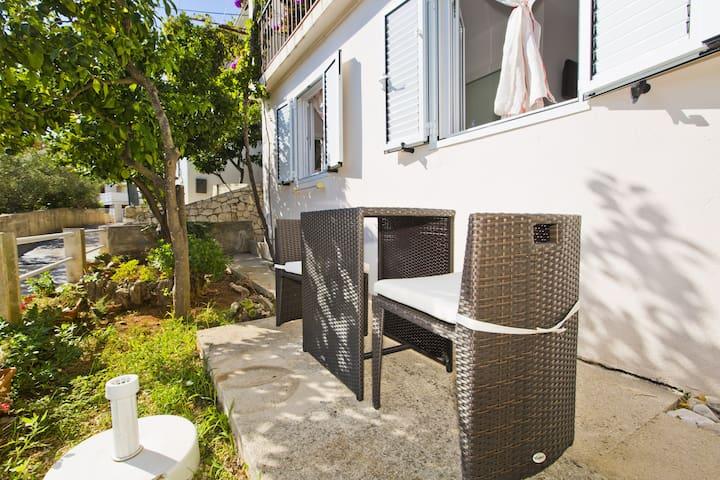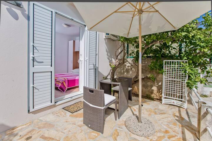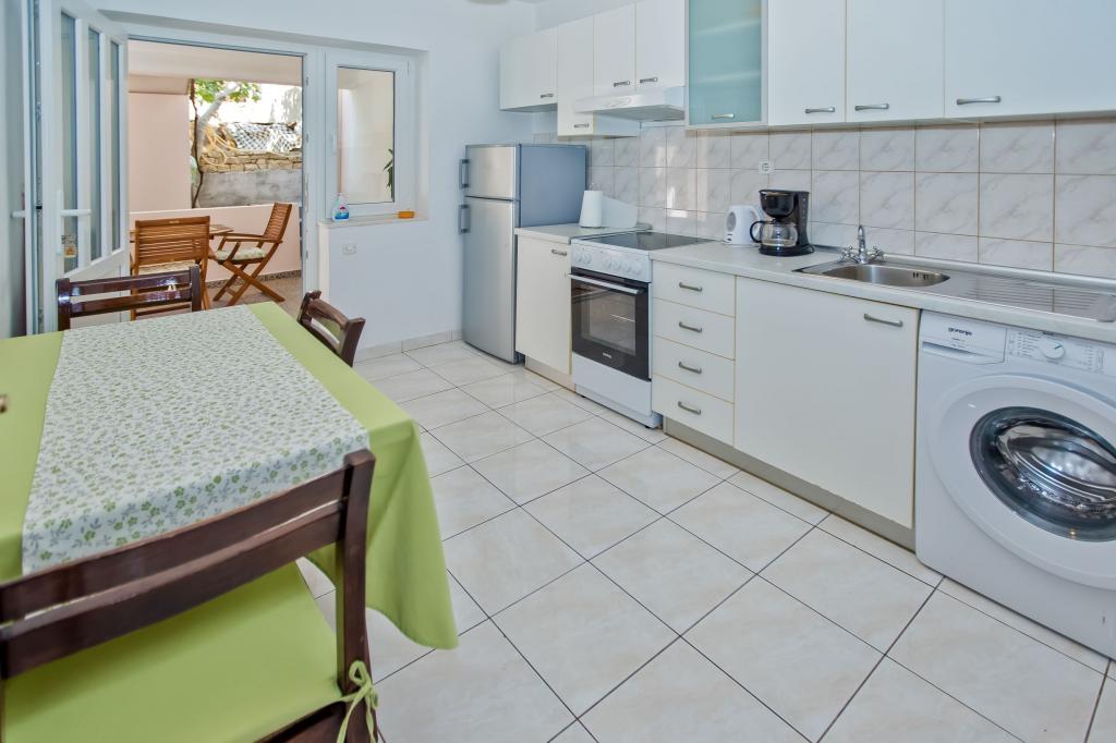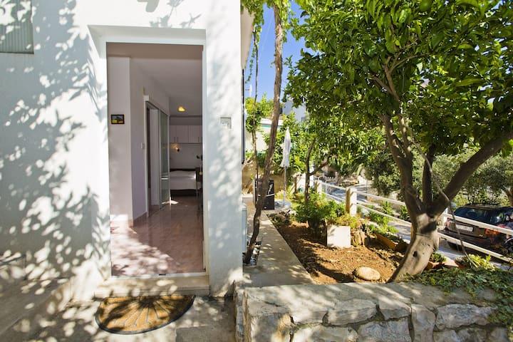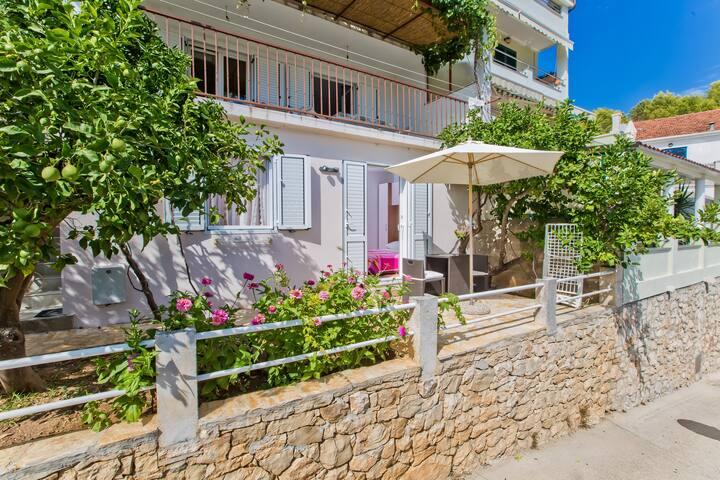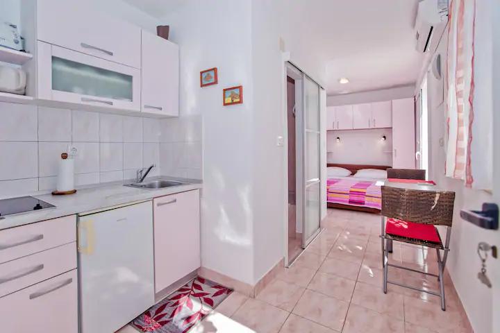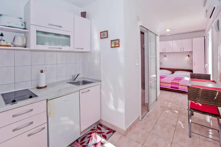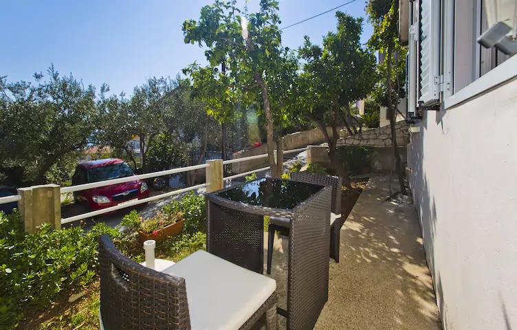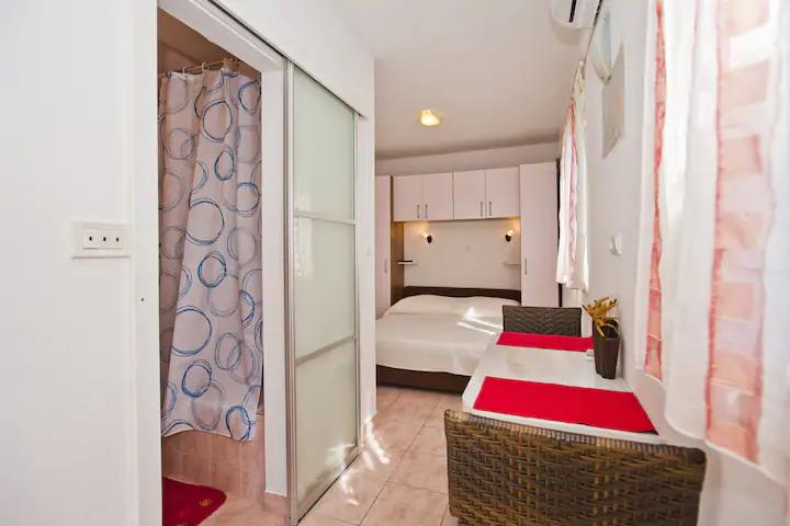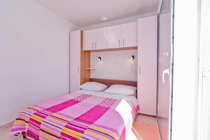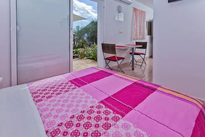 Luksusowy apartament, nowocześnie wyposażony, znajduje się na pierwszym piętrze naszego domu i ma powierzchnię całkowitą 70m2. Mieszkanie składa się z sypialni, salonu, w pełni wyposażonej kuchni z pralką, łazienki z wanną oraz dodatkowej toalety. Salon i sypialnia wychodzą na południe, a od frontu mają balkon z miejscami do siedzenia, z którego można podziwiać niezapomniany widok na wyspy Paklin i morze. Apartament przeznaczony jest do zakwaterowania 2 osób dorosłych, ale także do zakwaterowania rodziny z dwójką dzieci. Nasza kawalerka znajduje się na parterze naszego domu i jest idealnym miejscem na relaks dla par. Mieszkanie ma powierzchnię całkowitą 20 m2 i składa się z jednego gustownie urządzonego pokoju, w pełni wyposażonej, nowoczesnej łazienki, pokoju z podwójnym łóżkiem oraz funkcjonalnej kuchni (z ekspresem do kawy, tosterem, podgrzewaczem wody itp.). ). Oba apartamenty są klimatyzowane i wyposażone w telewizor oraz łącze internetowe Wi-Fi. Oba apartamenty posiadają parking strzeżony.