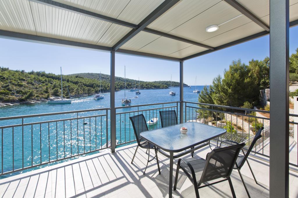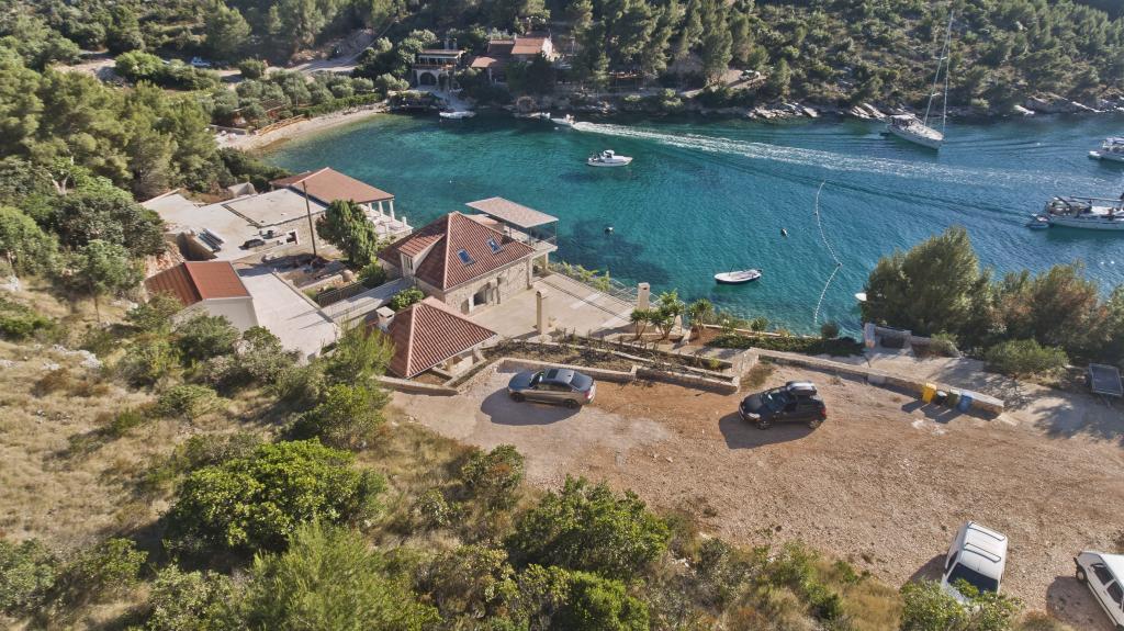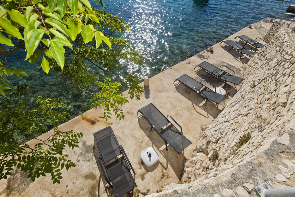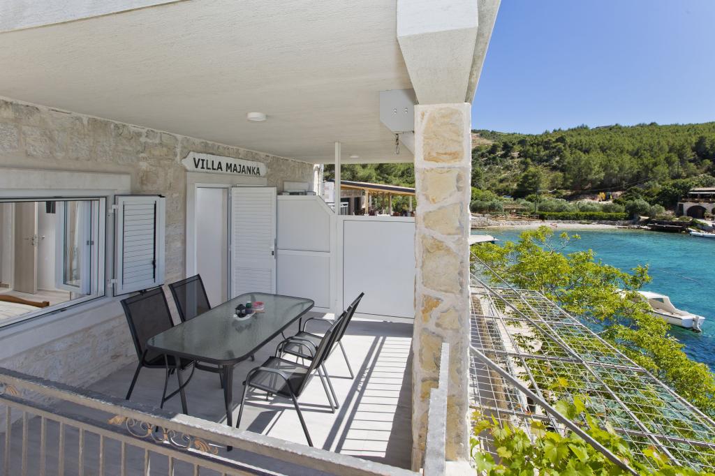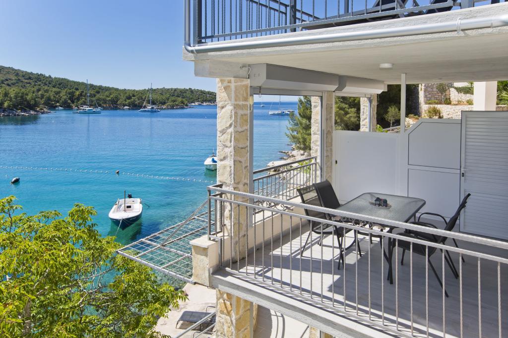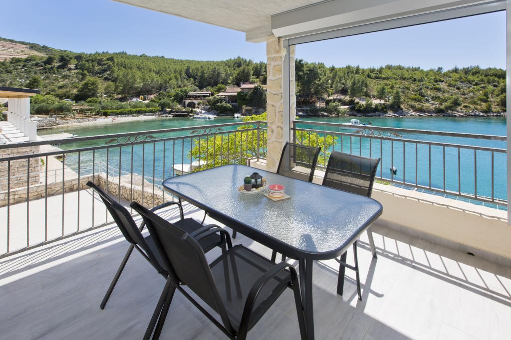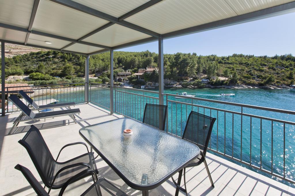 Apartamenty w cichej zatoce 3,5 km od miasta Hvar. Dom położony jest w pobliżu obozu Vira, naprzeciwko tawerny Ringo. Idealne miejsce na spokojne wakacje nad morzem, nieopodal wszystkich atrakcji. Do domu jest po drodze prywatnej, i to jest możliwe uzyskanie dostępu do morza. Dom, w którym znajdują się apartamenty posiada prywatną plażę z leżakami i prysznicem, cumowanie łodzi, schody prowadzą do wejścia. Apartamenty składają się z WC, kuchnia, sypialnia i duży taras, który znajduje się nad morzem. Będziemy omawiać również odkryty grill, naturalny odcień, piękne widoki i prywatny parking. Plaża jest kamienista i zatok niepożądane płaskich kamieni nadaje się do opalania, z dala od niechcianych widoków.