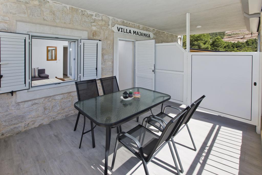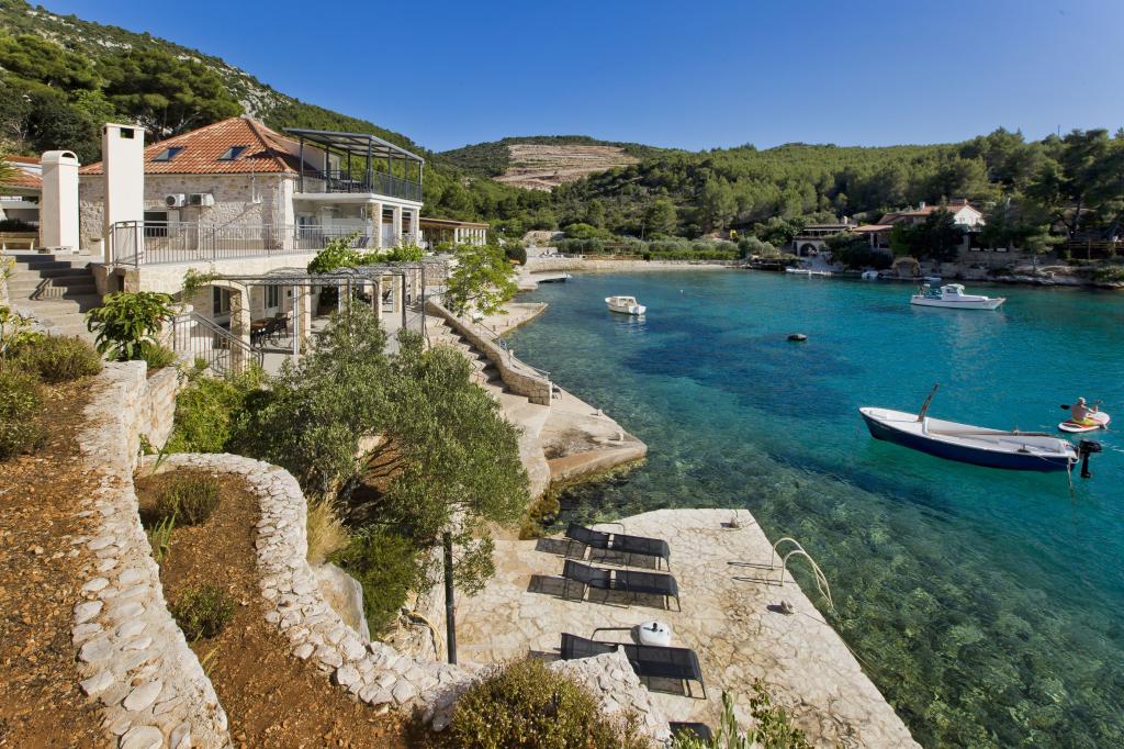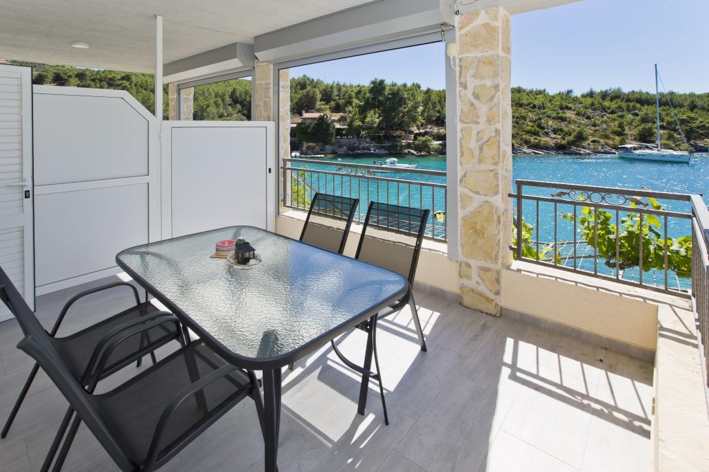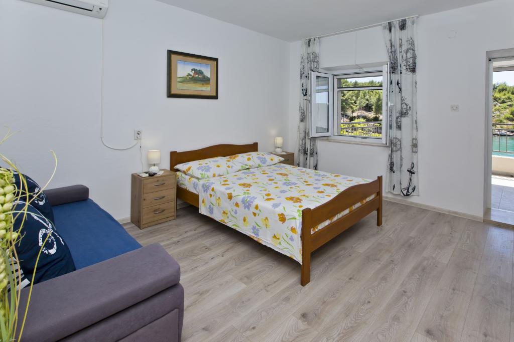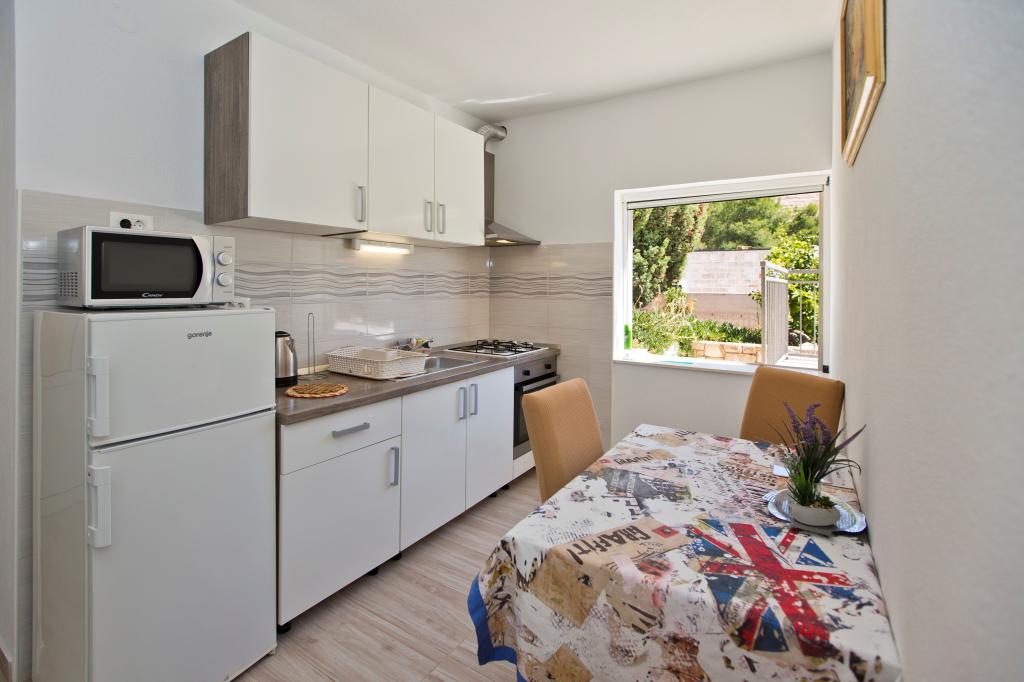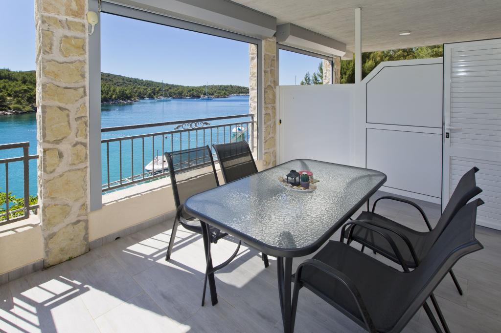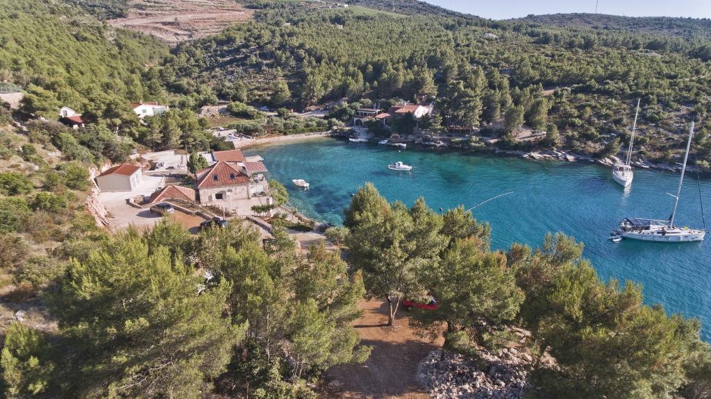 Apartamenty w cichej zatoce 3,5 km od miasta Hvar. Dom położony jest w pobliżu obozu Vira, naprzeciwko tawerny Ringo. Idealne miejsce na spokojne wakacje nad morzem, nieopodal wszystkich atrakcji. Do domu jest po drodze prywatnej, i to jest możliwe uzyskanie dostępu do morza. Dom, w którym znajdują się apartamenty posiada prywatną plażę z leżakami i prysznicem, cumowanie łodzi, schody prowadzą do wejścia. Apartamenty składają się z WC, kuchnia, sypialnia i duży taras, który znajduje się nad morzem. Będziemy omawiać również odkryty grill, naturalny odcień, piękne widoki i prywatny parking. Plaża jest kamienista i zatok niepożądane płaskich kamieni nadaje się do opalania, z dala od niechcianych widoków.