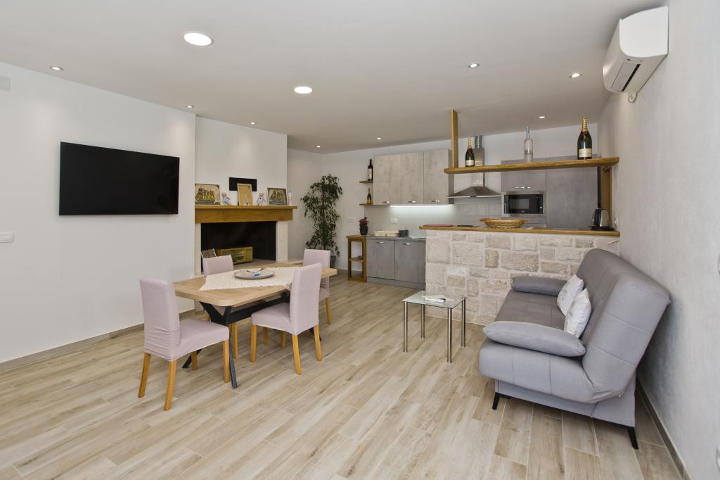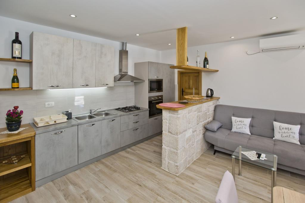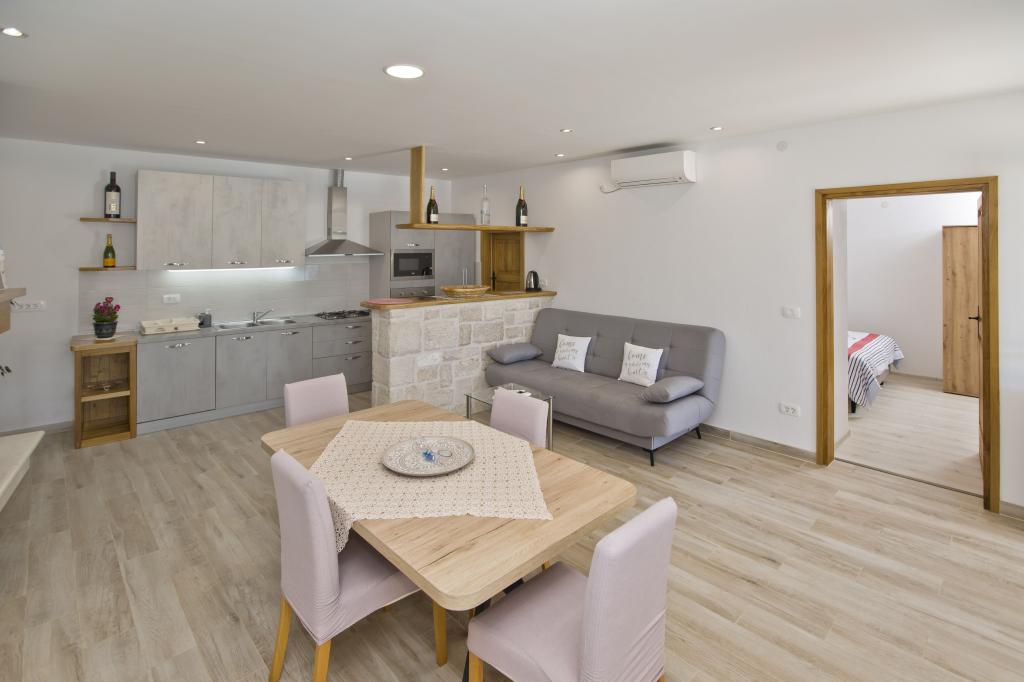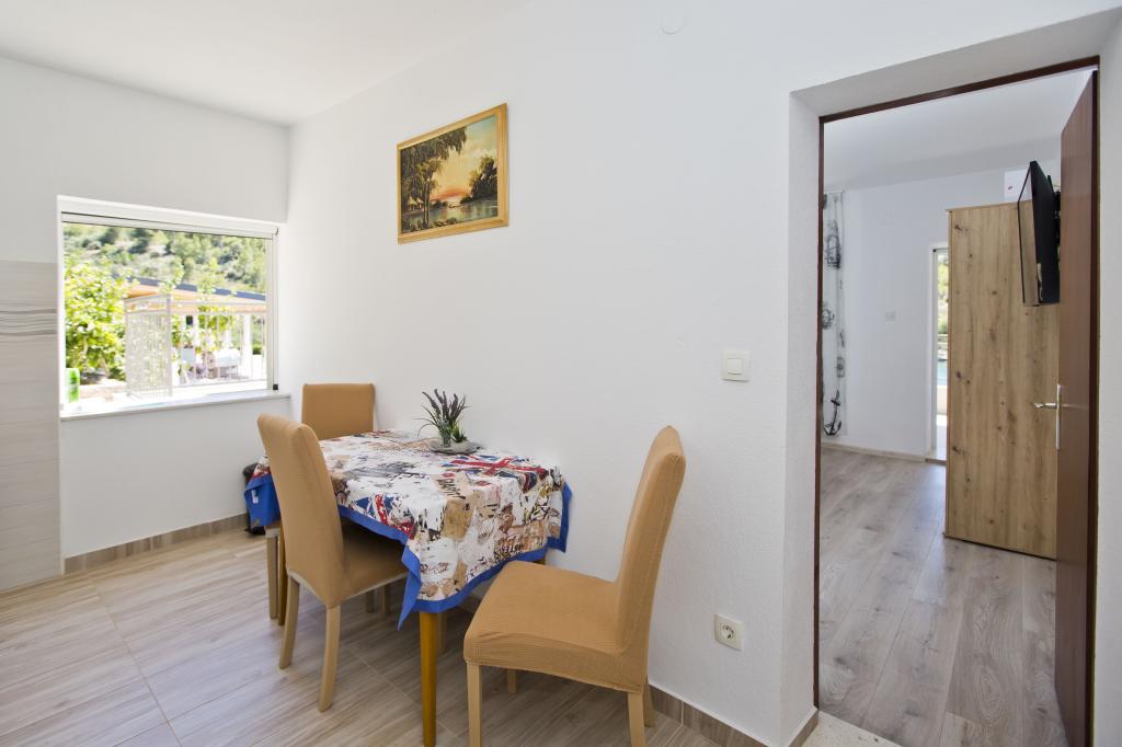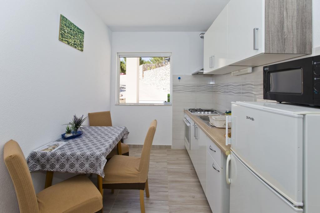 Mieszkanie jest doskonałe, nowoczesne i ma wszystko, czego możesz potrzebować. Kuchnia w pełni wyposażona, niczego nam nie brakowało. Morze jest tylko kilka kroków od apartamentu, a na kamiennym brzegu znajdują się leżaki i prysznic na świeżym powietrzu. Zatoka jest spokojna i cicha, raj na ziemi, z dwiema tawernami po drugiej stronie ulicy. Jesteśmy bardzo zadowoleni z naszego pobytu, Sunčica jest doskonałym gospodarzem. Na pewno wrócimy. Zalecenia dotyczące domowego czerwonego wina i ziołolecznictwa.
