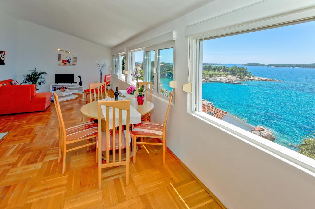 Dom położony jest w najpiękniejszej części miasta Hvar, w zatoce Podstine. Zatoka położona jest w spokojnym krajobrazie otoczonym sosnami i cyprysami (w naszej zatoce znajduje się także rezydencja prezydenta republiki). Jesteśmy 15 minut spacerem od centrum miasta przez piękną część miasta (są hotele, centralna plaża z wieloma różnymi udogodnieniami i piękny las sosnowy). Poniżej naszego domu znajduje się plaża (dom jest w bezpośrednie sąsiedztwo morza), do którego można dojść przez nasz ogród. W pobliżu domu znajduje się ładny mały hotel Podstine, który oferuje możliwość spożywania różnych specjałów kulinarnych, używane baseny, sauny... W pobliżu znajduje się także centrum nurkowe, korty tenisowe. Supermarket znajduje się 5 minut od hotelu. odległość od nas.
