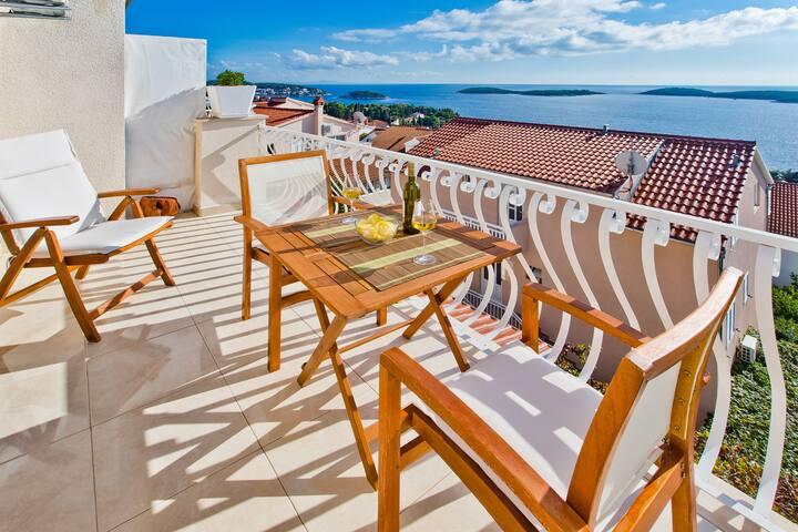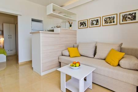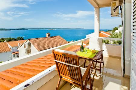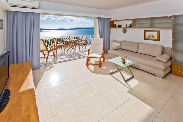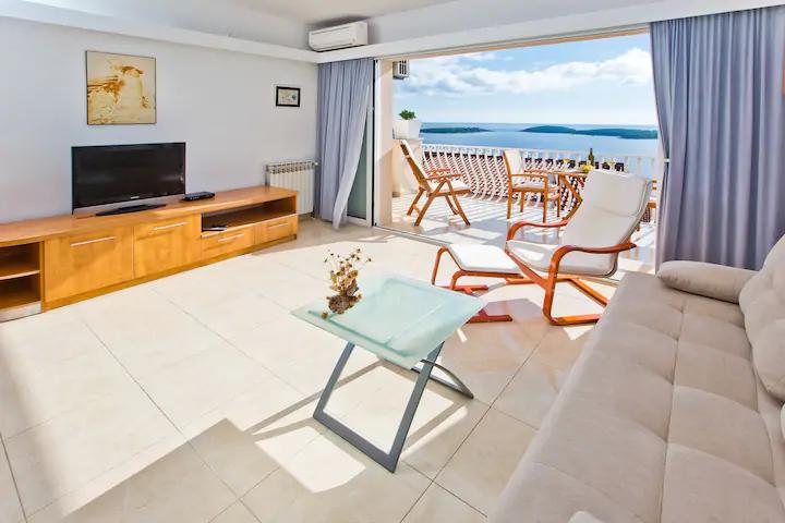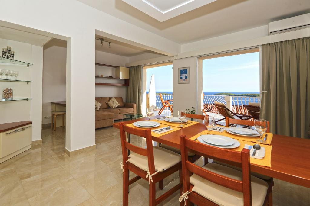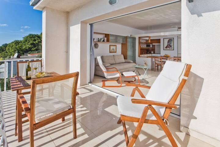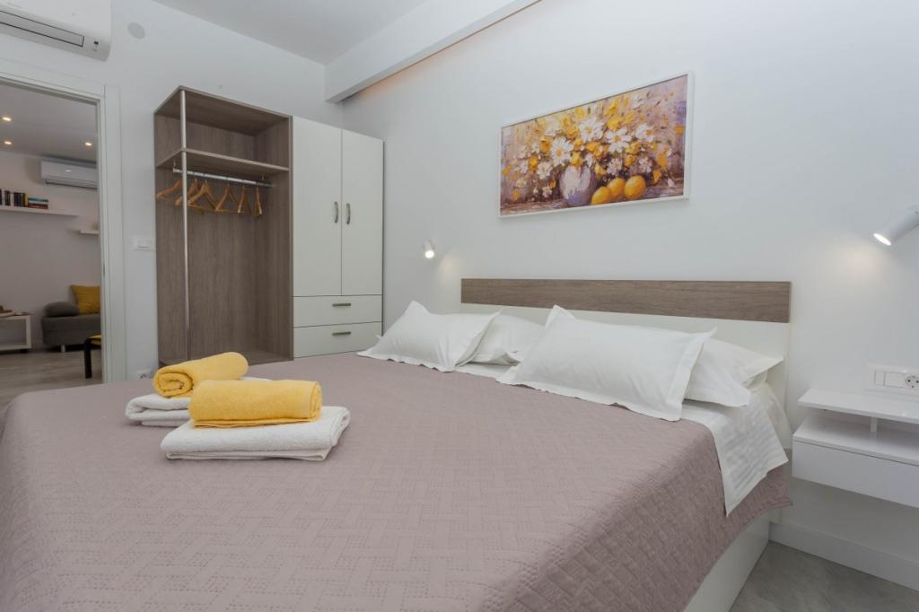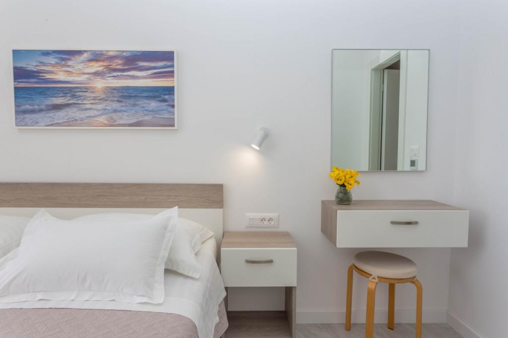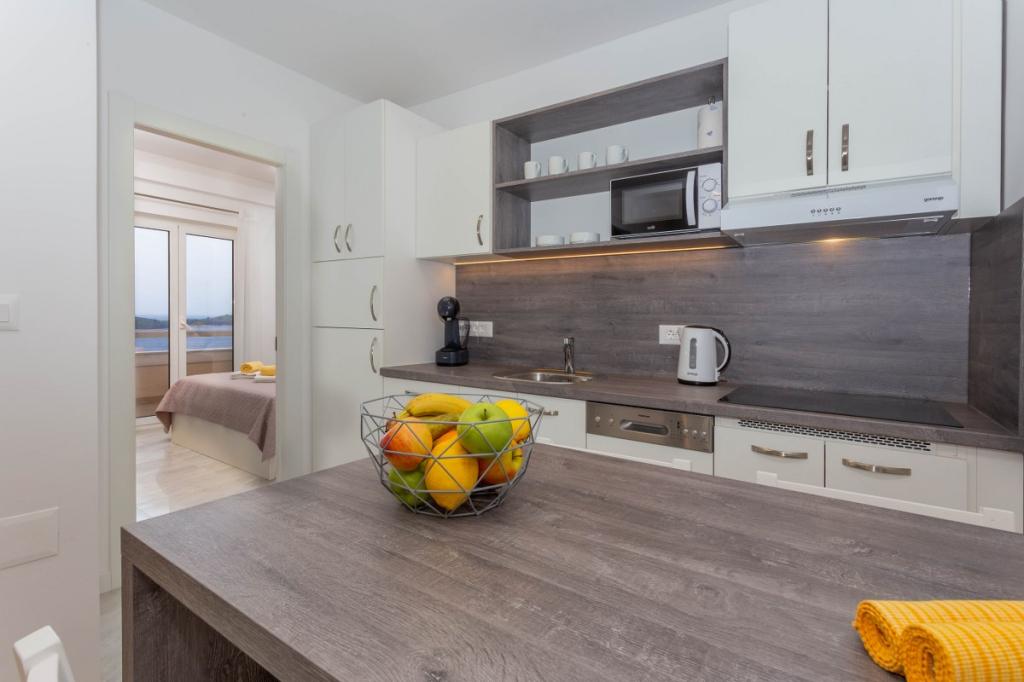 Nowoczesne i nowoczesne apartamenty Dominis z niesamowitym, 180-stopniowym, panoramicznym widokiem, który zapiera dech w piersiach. Oferujemy naszym gościom 4 nowoczesne apartamenty, w pełni wyposażone we wszystkie niezbędne udogodnienia, zapewniające przyjemny wypoczynek: apartament Blue Peace (4 gwiazdki), apartament Blue Horizon (4 gwiazdki), apartament White (4 gwiazdki) i apartament Green (3 gwiazdki). Apartamenty wyposażone są w pralki lub zmywarki, telewizję satelitarną, klimatyzację i szybkie łącze Wi-Fi. Do dyspozycji gości jest parking dla samochodów oraz grill, na którym można przygotować różnorodne rybne i mięsne przysmaki. Ciesz się wschodami i zachodami słońca z naszych przestronnych tarasów w towarzystwie bliskich, słuchając jedynie szumu morza. A gdy zechcesz uciec od miejskiego zgiełku, przyjemny spacer zaprowadzi Cię do centrum miasta w zaledwie 15 minut. W upalne letnie dni poszukaj orzeźwienia w czystym morzu na plażach, zaledwie 5 minut spacerem od naszego domu. WITAMY!!!