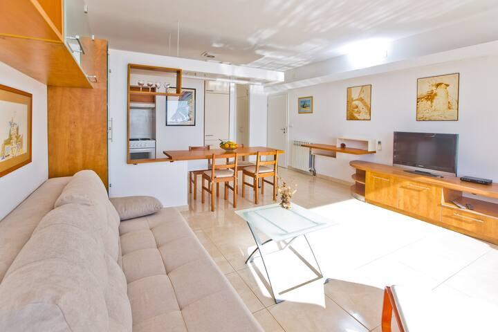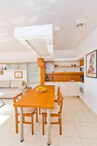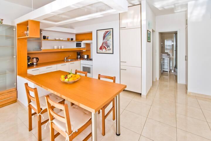 Mieszkaliśmy w mieszkaniu Tatjany przez siedem dni i bardzo nam się podobało !! Duży, prywatny taras przed apartamentem z grillem, z którego często korzystaliśmy, był dużym światłem naszych wakacji (niesamowity widok na morze i wyspy!) Sam apartament jest idealny dla czterech osób (i byliśmy dwie pary), z każdym możliwe urządzenie, którego można sobie życzyć (również zmywarka), a są też dwie łazienki .. Tatjana jest bardzo słodką damą, zaangażowaną w swoją działalność, bardzo wrażliwą na wszystkie pytania, które mieliśmy i zawsze do dyspozycji. Widzieliśmy, że bardzo ostrożnie podchodzi do szczegółów, co widać po aranżacji wnętrza mieszkania i drobnych akcentach, które nam zostawiła. Możemy gorąco polecić jej mieszkanie i na pewno wrócimy następnego lata !!