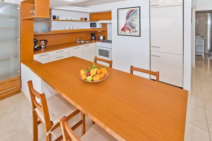 Piękny przestronny apartament, dobrze wyposażony, duży taras z grillem i pięknym widokiem na morze. Spokojna okolica, a gospodyni jest bardzo miła i zawsze do Państwa dyspozycji.