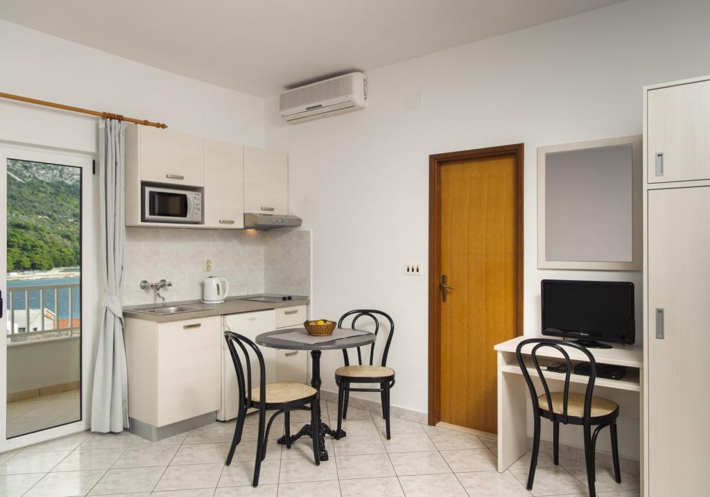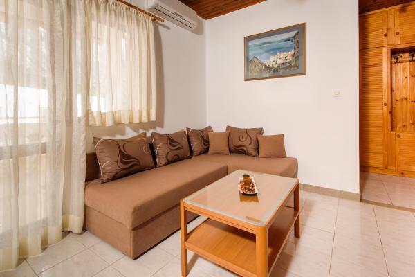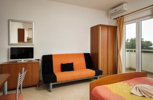 Z ładnie urządzonych i czystych apartamentów rozciąga się przepiękny widok na wyspa Hwar. Posiadamy 8 apartamentów kategorii 3, 2 – osobowych, wszystkie są klimatyzowane. Powierzchnia aprtamentów wynosi od 25 do 60 m² i każdy apartement posiada balkon lub taras.