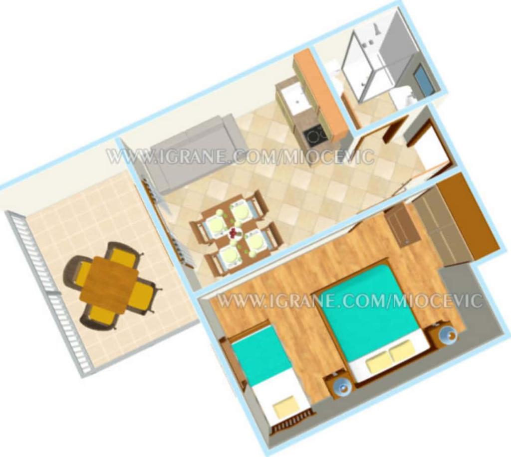 W pełni wyposażone i nowoczesne apartamenty Miočević znajdują się w spokojnej okolicy w Igrane, zaledwie 20 metrów od centrum miasta i 2 minuty spacerem od plaży. Apartamenty są nowe, klimatyzacja, Wi - Fi Strefy, a miejsca parkingowe w pobliżu. Obiekt posiada duży ogród, w otoczeniu kwiatów i zieleni. W nocy jest bardzo cichy, ponieważ nie ma żadnych obiektów gastronomicznych w pobliżu. Gospodarze mają czasu svokom do Państwa dyspozycji.