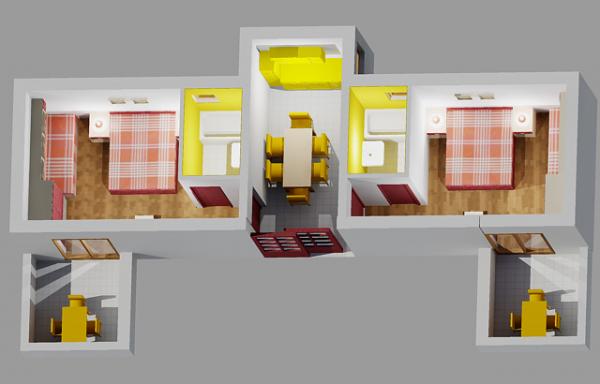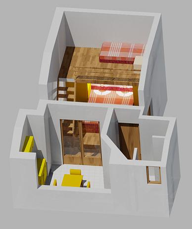 Apartament dla dwóch osób z dwoma dostawkami (50 m2)
