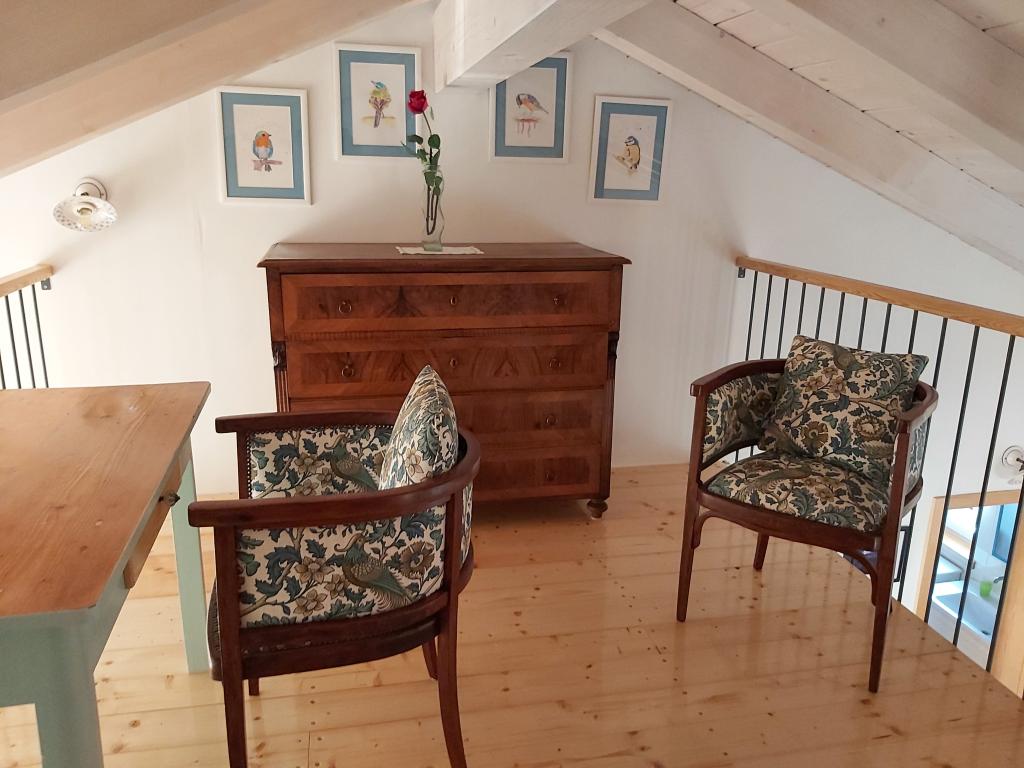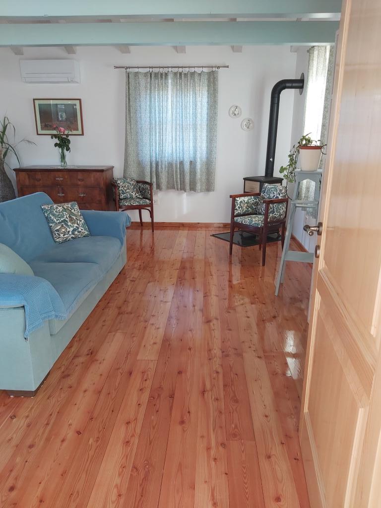 Chociaż nasz dom znajduje się 5 minut spacerem od centrum idyllicznego miasteczka Ilovik, jest wyjątkowy i wart odwiedzenia. Jako jedyni na terenie gospodarstwa posiadamy przestronny, luksusowo urządzony apartament z 4 słońcami, którego niełatwo znaleźć na wyspach. Podłogi drewniane, czyli połączenie nowoczesnych i zabytkowych mebli drewnianych, które w większości samodzielnie odnawiamy, zaskoczą Państwa komfortem i pięknem. Z sypialni roztacza się piękny widok na cały port i sąsiednie wyspy św. Piotr i Orjule. A co najważniejsze, w nocy masz ciszę i widok na rozgwieżdżone niebo. Mieszkanie spełnia wszystkie pragnienia współczesnego człowieka, ale oferuje również więcej. Jesteśmy autorami monografii o Iloviku, tutaj dowiesz się wszystkiego, co musisz wiedzieć o historii wyspy, przyrodzie, obyczajach, do Twojej dyspozycji jest duża biblioteka. Jesteśmy miłośnikami zwierząt, hodujemy owce i kozy, z którymi można spędzać czas, a także nasze psy, koty, kaczki (w końcu jesteśmy farmą!). Na dużym, zadaszonym tarasie można skorzystać z dużego drewnianego stołu.