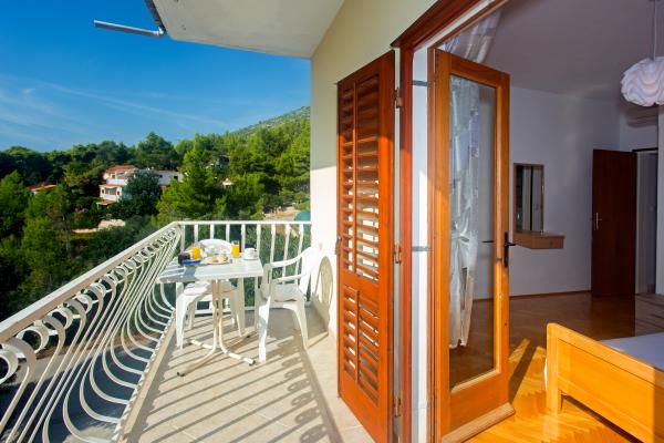 Balic Apartamenty znajdują się w południowej części wyspy, w niewielkiej miejscowości Ivan Dolac. Dzięki największej liczbie słonecznych dni w Chorwacji i na stromych zboczach winnic południowej części wyspy, w Ivan Dolac obszarze uzyskuje się z winogron, które sprawiają, najlepsze wina jakości. Ivan Dolac jest dumna ze swojego środowiska, pełne aromatycznych ziół i innych roślin śródziemnomorskich. Z miejsca piękny widok na małej wyspie Scedro i Korcula. Natura i środowisko w Ivan Dolac są idealnym miejscem na wypoczynek, zwłaszcza dla rodzin z dziećmi, osób starszych, ale także dla osób zmęczonych od codziennego zgiełku miasta. Balic Apartamenty zostały zaprojektowane jako osobne mieszkania, z własnym wejściem. Każdy apartament posiada jedną lub dwie sypialnie, pokój dzienny, w pełni wyposażona kuchnia i jadalnia, łazienka i WC, klimatyzacja, parking oraz duży taras z widokiem na morze. Jako zarejestrowany rodzinnej farmie, produkcji oliwy z oliwek, wino, brandy i inne produkty krajowe.