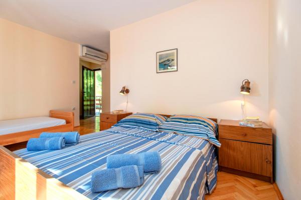 Przebywając 7 nocy w tym mieszkaniu, które nie wygląda jak mieszkanie ze zdjęć, doświadczyłem największej niedogodności w moim życiu. Wracając na granicę, policjant zapytał mnie, gdzie się zatrzymałem i dlaczego się nie zameldowałem??!!!! W zdumieniu i szoku próbowałem mu wytłumaczyć, gdzie się zatrzymałem i że mówi, że podatek turystyczny jest wliczony w nierealistycznie wysoką cenę za zakwaterowanie, które płaciliśmy! Powiedział mi, że nie jestem zarejestrowany i że muszę zapłacić grzywnę w wysokości 500 HRK!!!! Teraz, jeśli chodzi o samo zakwaterowanie, jedynym pozytywem (chyba to oczywiste) jest to, że mieszkanie jest czyste. Meble w mieszkaniu pochodzą z ubiegłego wieku! Szafki są przybite gwoździami??!!! i nie dało się ich użyć!!! Klimatyzator działa w połowie. Jak tylko przyjechaliśmy, zwróciliśmy uwagę gospodarzom, że kanały satelitarne nie działają i nikt nie raczył rozwiązać problemu przez wszystkie 7 dni! Taras jest przestronny, ale od mieszkania oddziela Cię niski murek, który nie przechodzi do końca, dzięki czemu, podobnie jak goście obok nas, jesteście całkowicie pozbawieni intymności. Szczególną historią jest bardzo niewygodne, małe i stare łóżko, które skrzypi tak bardzo za każdym razem, gdy jest poruszone, że obudziło moją żonę i mnie przez te wszystkie 7 nocy. W sumie czujemy się oszukani i poniżeni!!!