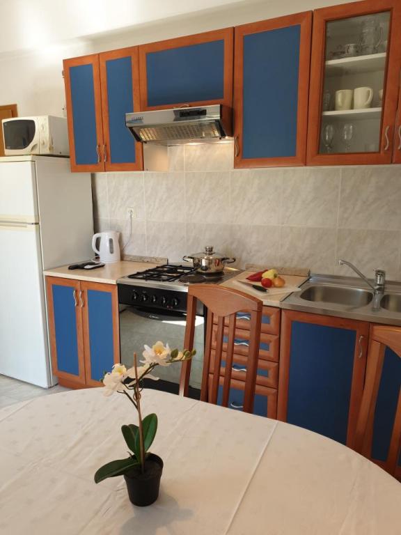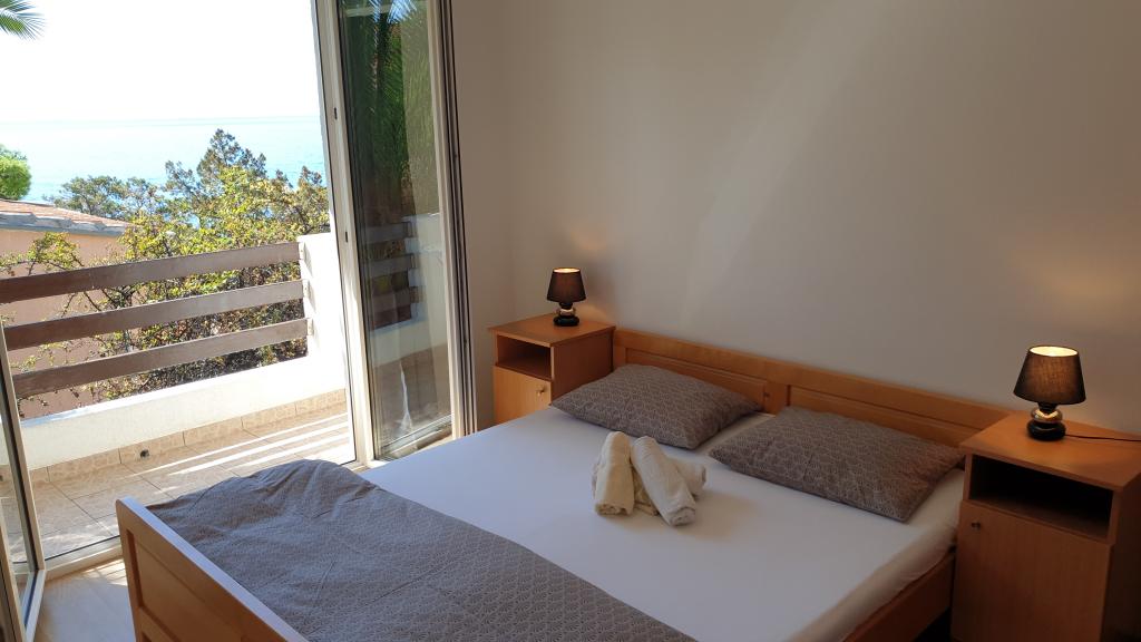 Apartamenty z pięknym widokiem na morze znajdują się tuż przy plaży w miejscowości Ivan Dolac. Jest to również ścisłe centrum spokojnej miejscowości turystycznej, która jest idealna dla rodzin z dziećmi ze względu na bliskość plaży, zaledwie 10 metrów od domu, piekarnia 40 m, sklep 100 m, kawiarnia i restauracja 20 m. W piwnicy domu znajduje się nasz sklep z pamiątkami i sklep z winami. - Mały apartament A3 składa się z kuchni ze stołem jadalnym i rozkładaną sofą, sypialni z podwójnym łóżkiem, łazienki z prysznicem, przedpokoju i tarasu. Z prawie całego apartamentu rozpościera się piękny widok na morze i plażę. Mieszkanie znajduje się na 1 piętrze domu, podobnie jak mieszkanie. A4. - Duży Apartament A4 składa się z kuchni ze stołem jadalnym i rozkładaną sofą, dwóch sypialni z podwójnym łóżkiem, łazienki z prysznicem, przedpokoju oraz tarasu. Z kuchni, jednej sypialni i tarasu roztacza się widok na morze.