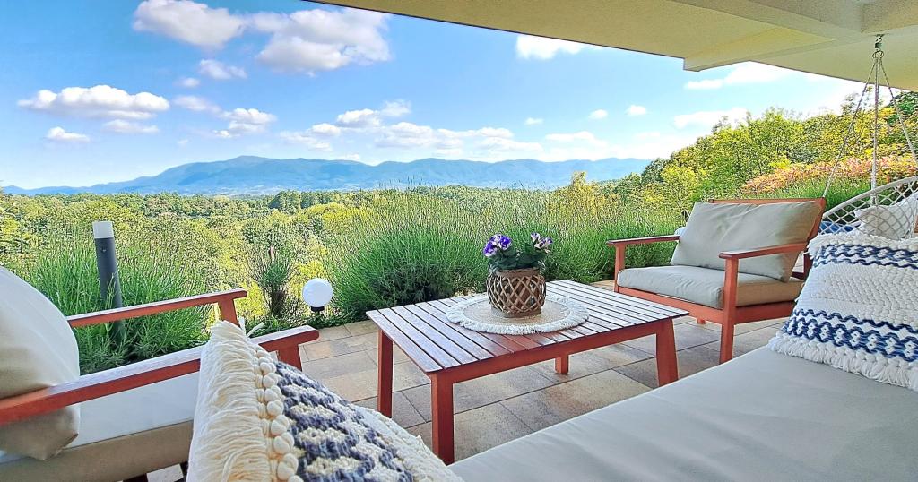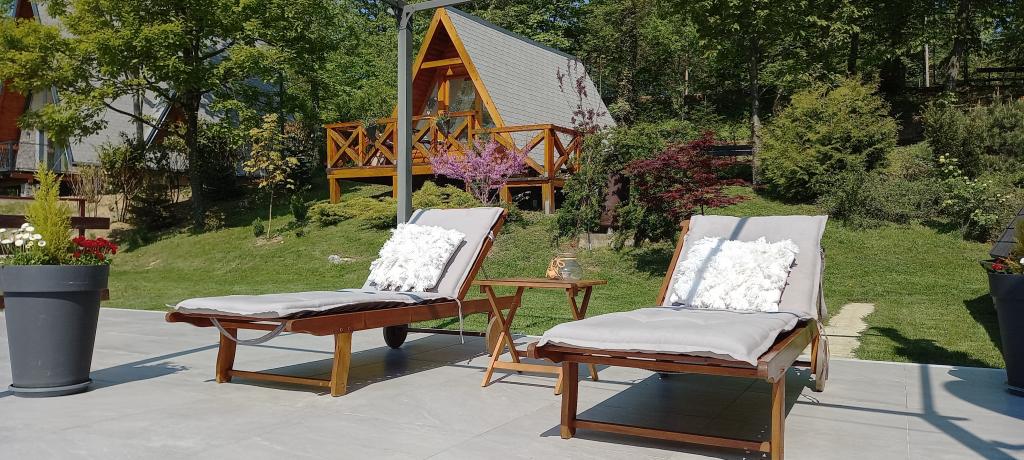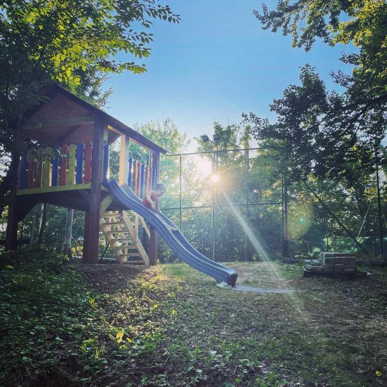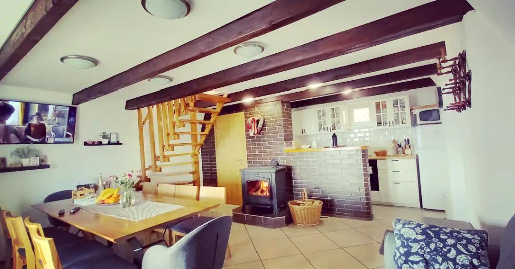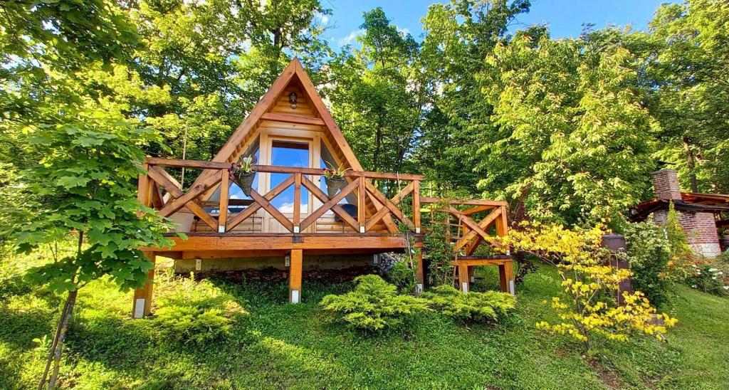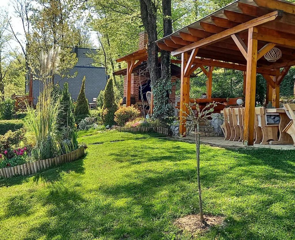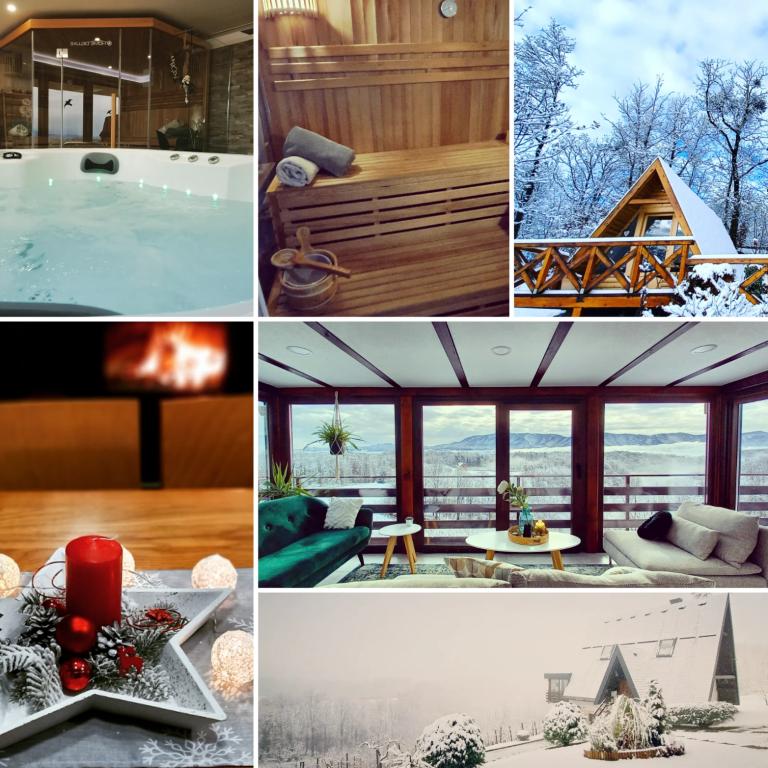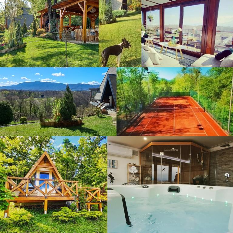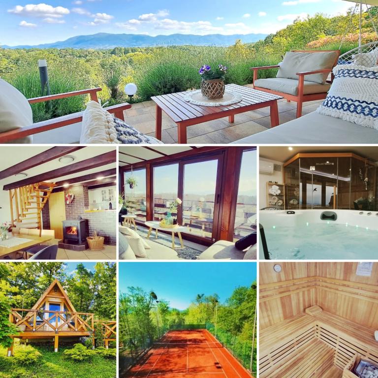 Ciesz się i wypoczywaj w domu wakacyjnym () i tuż obok \glamping\ domu, wszystko otoczone lasem, na wysokości 305 metrów nad poziomem morza. Podwórko z pięknym widokiem na górę Ivanščica zawiera duży zadaszony taras z dużym grillem / piekarnikiem oraz własny gliniany kort tenisowy z oświetleniem dostępnym w cenie. Dom posiada dwie sypialnie, salon z kominkiem opalanym drewnem i stołem dla 12 osób, łazienkę oraz w pełni wyposażoną kuchnię, a piękny dom glampingowy posiada sypialnię i prywatną łazienkę! Dostępny jest również stół do tenisa stołowego, kompletny sprzęt do grillowania, rowery i wiele innych. Psy i stałe zwierzęta mile widziane :)