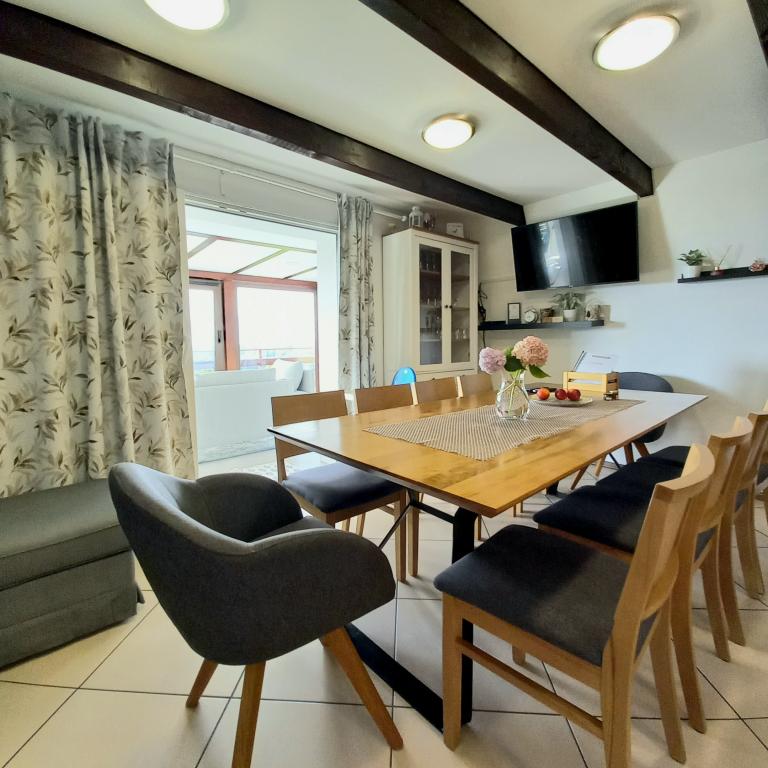 Jeśli chcesz zapomnieć o szybkim tempie dzisiejszego trybu życia, to jest to odpowiednie miejsce dla Ciebie. Zaledwie godzinę jazdy od Zagrzebia, wśród pięknych zielonych wzgórz Hrvatskiego Zagorja, znajduje się idealne miejsce na oderwanie się od codzienności. Ciesz się strefą SPA, jacuzzi, sauną, prywatnym kortem tenisowym, piękną przyrodą w nowoczesnym domu urządzonym z dużym nakładem pracy! Z widokiem na piękny krajobraz będziesz cieszyć się przyrodą, spacerami, tenisem, winem i innymi udogodnieniami, które Ci oferujemy. Idealne miejsce na spokojny lub aktywny wypoczynek, na spacery do pobliskich jezior, jazdę na rowerze, spacery do pobliskiej jaskini \Mačkova špilja\, stare zagorskie domy i oczywiście perła Zagorja, zamek i jezioro Trakošćan tylko 10 - minuta jazdy samochodem, a także barokowe miasto Varaždin i jego festiwal spancir, Lepoglava, Krapina, a także liczne uzdrowiska (Sv. Martin, Jezerčica, Ptuj, Tuhelj ...) i wszystko to blisko nas.