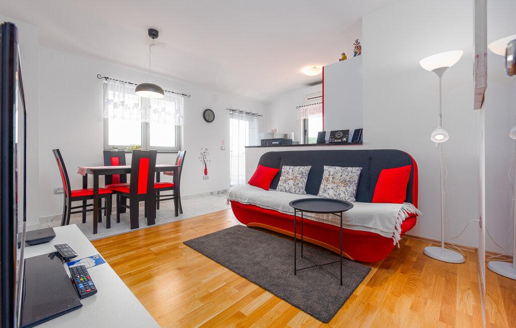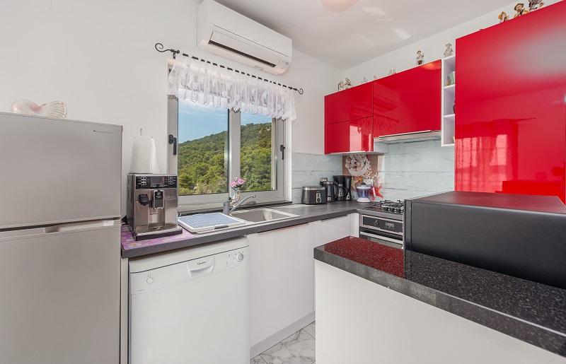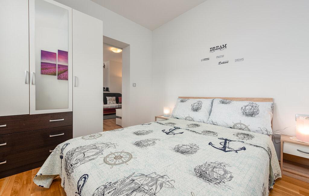 Czas na zasłużony odpoczynek i relaks na słonecznej wyspie Iž – apartament Sea Whisper. Komfortowy apartament na spokojne rodzinne wakacje, z pięknymi plażami, krystalicznie czystym morzem i doskonałą ofertą dalmatyńskiej kuchni. Ciesz się poranną kawą lub wieczornym zachodem słońca w apartamencie z tarasem z zapierającym dech w piersiach widokiem na morze i okolicę. Widoczna jest wyspa Ugljan, a w oddali Velebit i wyspa Ždrelac. W pełni wyposażona kuchnia ze zmywarką, kuchenką mikrofalową, drobnym sprzętem AGD – tosterem, czajnikiem, wyciskarką do cytrusów, sypialnią, salonem, dużym telewizorem LCD z Max TV i Wi-Fi, klimatyzacją, rozkładaną sofą i łazienką, sejfem, pościelą i ręcznikami. Odległość od plaży 3-5 minut spacerem. Okolica sprzyja jeździe na rowerze, joggingowi i spacerom po wyspie – można cieszyć się zielenią wokół domu. Bezpłatny parking prywatny. Mówię po angielsku i chorwacku. Do Zadaru można dojechać łodzią AnaMarija, katamaranem i promem. Na wyspie znajdują się restauracje z najlepszymi winami, pysznym jedzeniem, rybami, mięsem, pizzą, dla smakoszy lody i ciasta, są tu 3 sklepy spożywcze, sklep z pamiątkami, przychodnia, bankomat. Zapraszamy na spokojną i relaksującą wyspę z dwiema literami Iž.