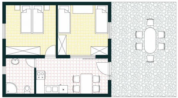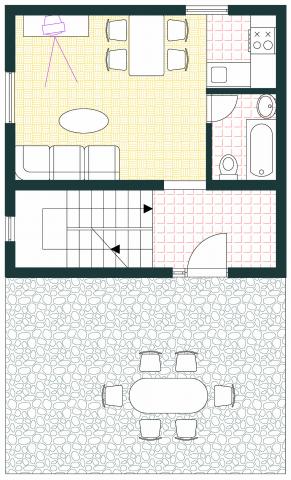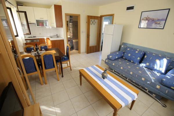 Apartament jako oddzielny budynek mieszkalny w spokojnej dzielnicy Mali Iž, 200 metrów od przystani promowej z oddzielnym miejscem parkingowym. Apartament na parterze posiada salon z kuchnią i łazienką, który może być wykorzystany jako osobny pokój lub apartament typu studio, a na parterze są 2 pokoje i łazienka. Oddzielne podwórze z grillem na cały dzień pobytu. Odległość od plaży jest 5 minut spacerem. Bezpieczne miejsce do cumowania łodzi i parking dla szlaków ,, wifi internet.