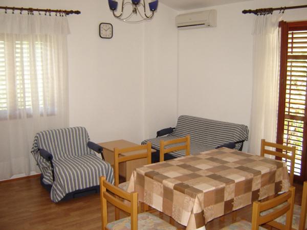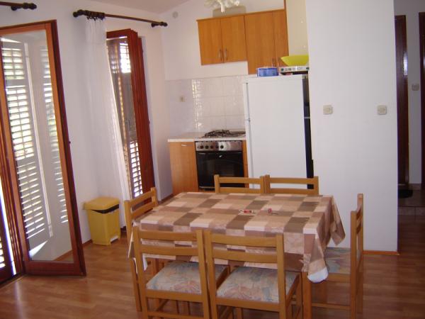 Dom położony jest w zacisznym miejscu, zaledwie 150 metrów od morza, centrum i sklepu. Przy drzwiach domu jest dostęp samochodem i parking jest na podwórku. Nowocześnie wyposażone apartamenty ze wszystkimi niezbędnymi udogodnieniami zapewniającymi przyjemny pobyt i miłe wakacje. Istnieją trzy oddzielne apartamenty i większa firma. Dwa apartamenty są dwupokojowe z kuchnią i pokojem dziennym (A-1 i A-2), natomiast trzecie (A-3) trzy-osobowe mieszkanie. Dla Twojego pojazdu bezpłatny parking na podwórku.