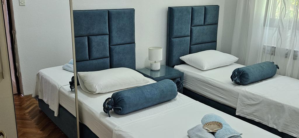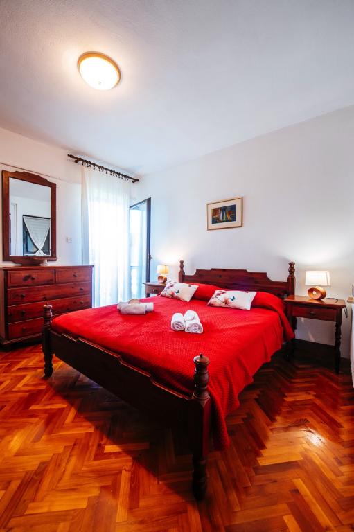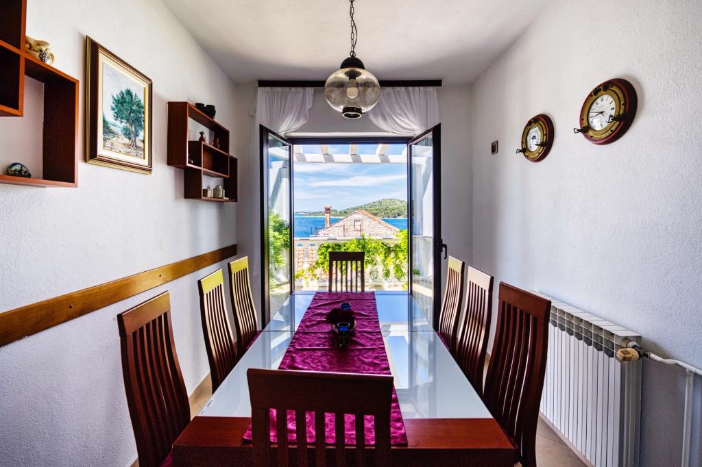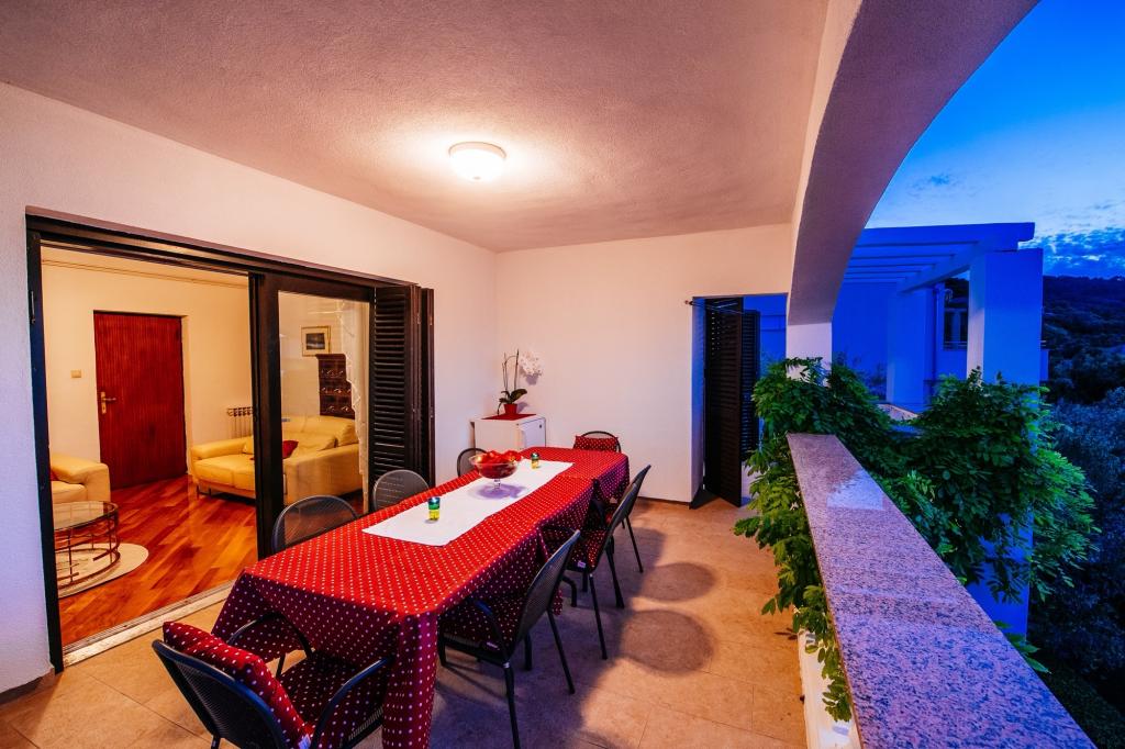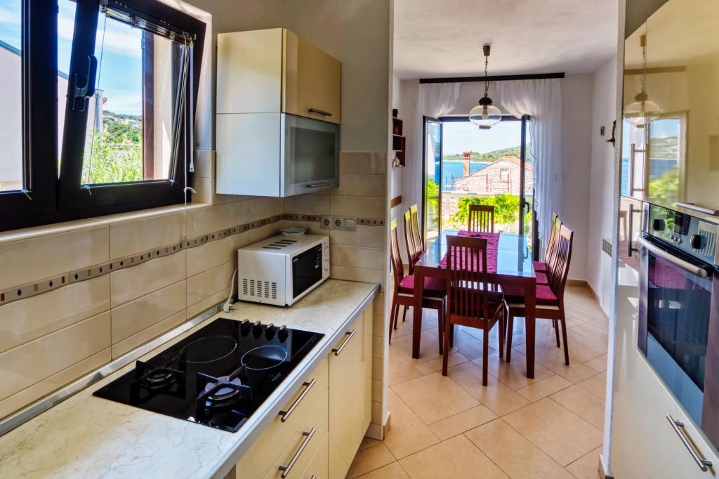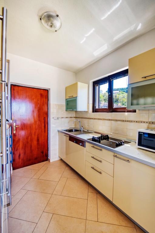 Dom rodzinny Malinina znajduje się w Mali Iž, bardzo blisko morza. W domu znajduje się osobna tawerna z grillem, stołem i krzesłami oraz garaż. Dwa tarasy z widokiem na morze, składa się z 2 pięter. Dolne piętro: 1 pokój z 1 łóżkiem (90 cm, o długości 190 cm), 1 frank. łóżko (160 cm, długość 200 cm). Jadalnia. Otwarta kuchnia (4 palniki, piekarnik, zamrażarka). Wanna / WC. Na piętrze: (zewnętrzne schody) salon / jadalnia 45 m2 z TV (satelitarna). odbiorca. Wyjście na taras. 1 pokój z 1 frankiem. łóżko (160 cm, długość 200 cm). Wyjście na balkon. 2 pokoje z 2 łóżkami (90 cm, długość 190 cm). Otwarta kuchnia (4 palniki, piekarnik, zmywarka do naczyń, zamrażarka). Prysznic / WC. Parking przy domu na działce, Zwierzęta nie są akceptowane.