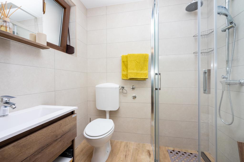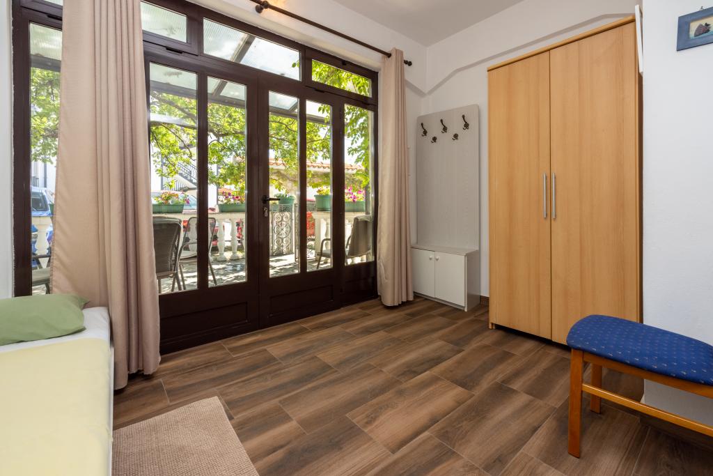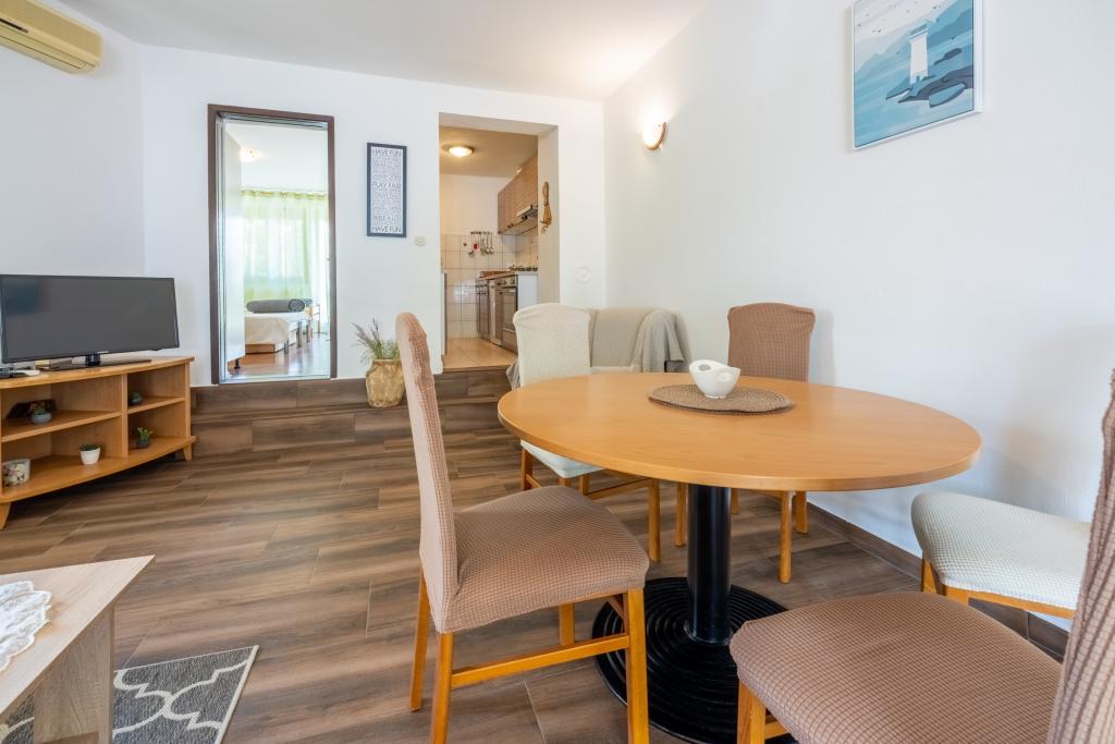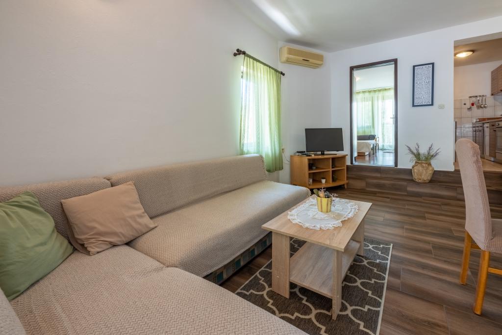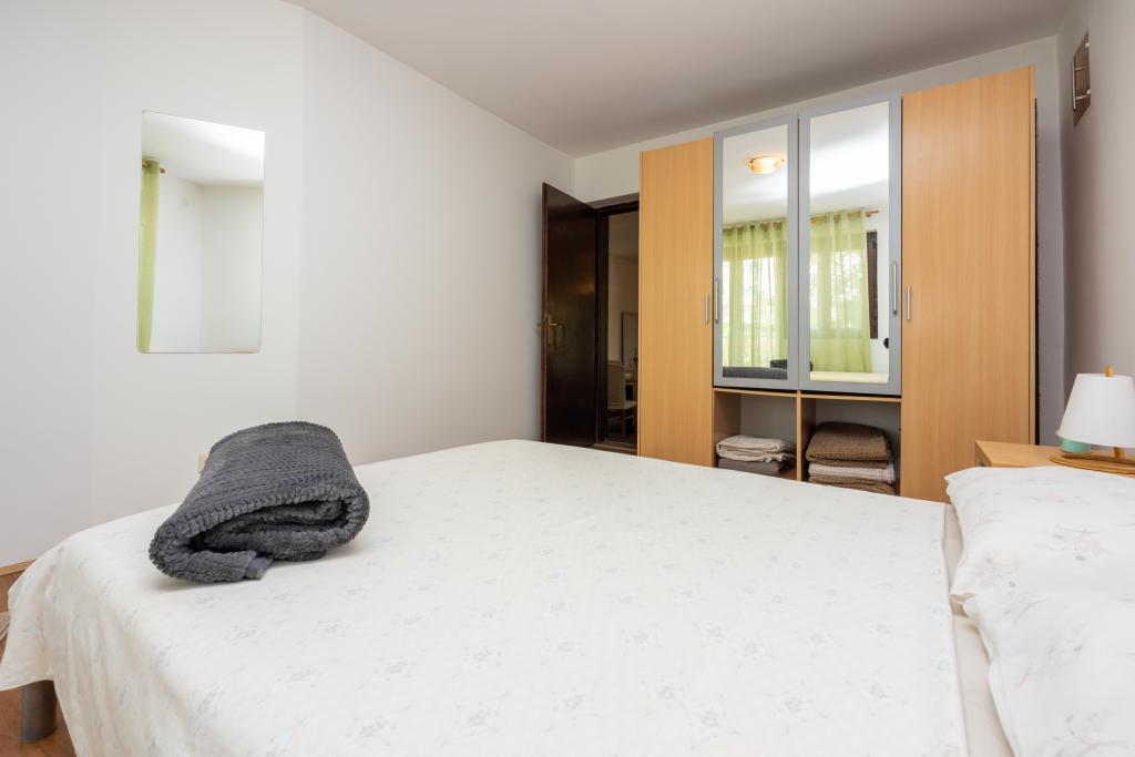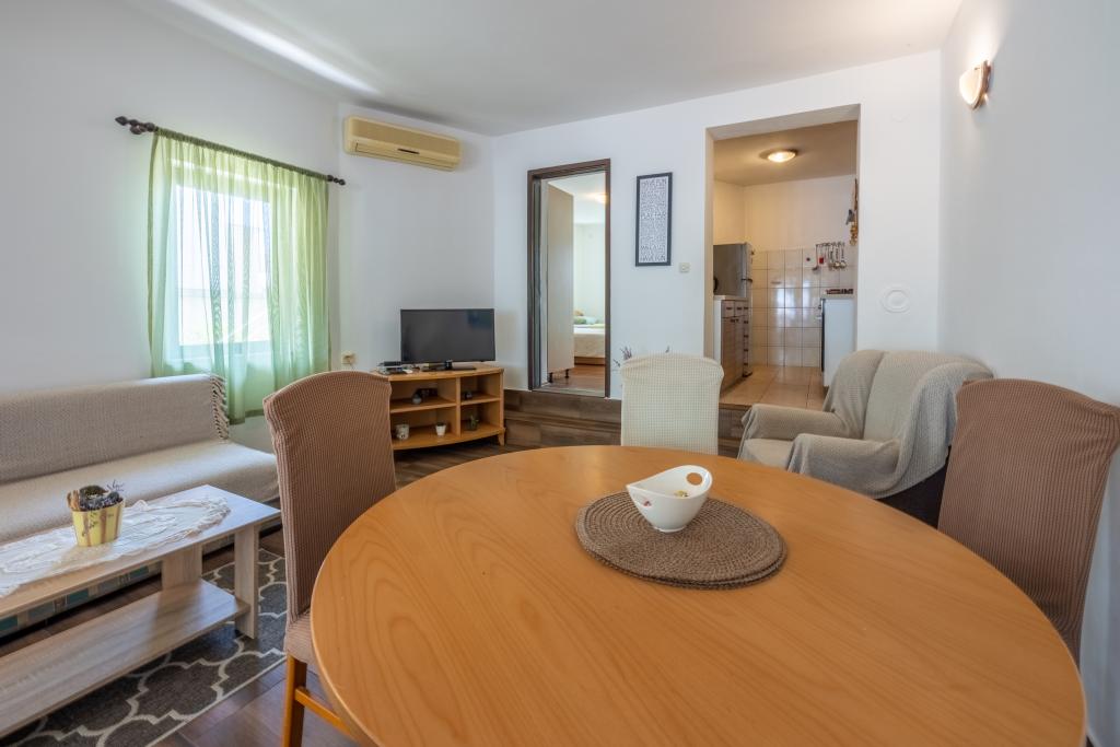 Klimatyzowany apartament z 2 balkonami, przy cichej ustronnej ulicy, położony w małej wiosce rybackiej Jadranovo. Do mieszkania przynależy ogród, miejsce na grilla, a także WI FI i parking. Mieszkanie posiada dwa balkony lub tarasy, 1 sypialnię, salon, kuchnię i toaletę. Masz 10 minut spacerem do najbliższej plaży i 15 minut spacerem do drugiej. Druga plaża jest również dostępna samochodem w 2 minuty, a masz bezpłatny parking tuż przy plaży.