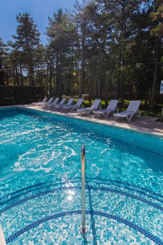 Opłata jest wliczone w cenę.W basenie dziedziniec z podgrzewaną wodą i dyszami do masażu wielkości 14x4 metrów i głębokości 1, 1m-1, 5m, tenis stołowy, grill. , Huśtawki dla dzieci, bezpłatny parking. Goście mogą zażądać, aby korzystać z pralki za opłatą. bezprzewodowy Internet Wi-Fi jest bezpłatny.