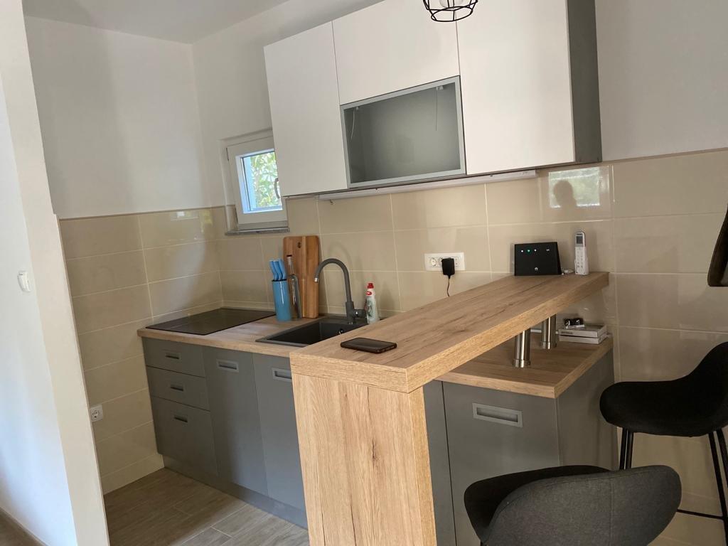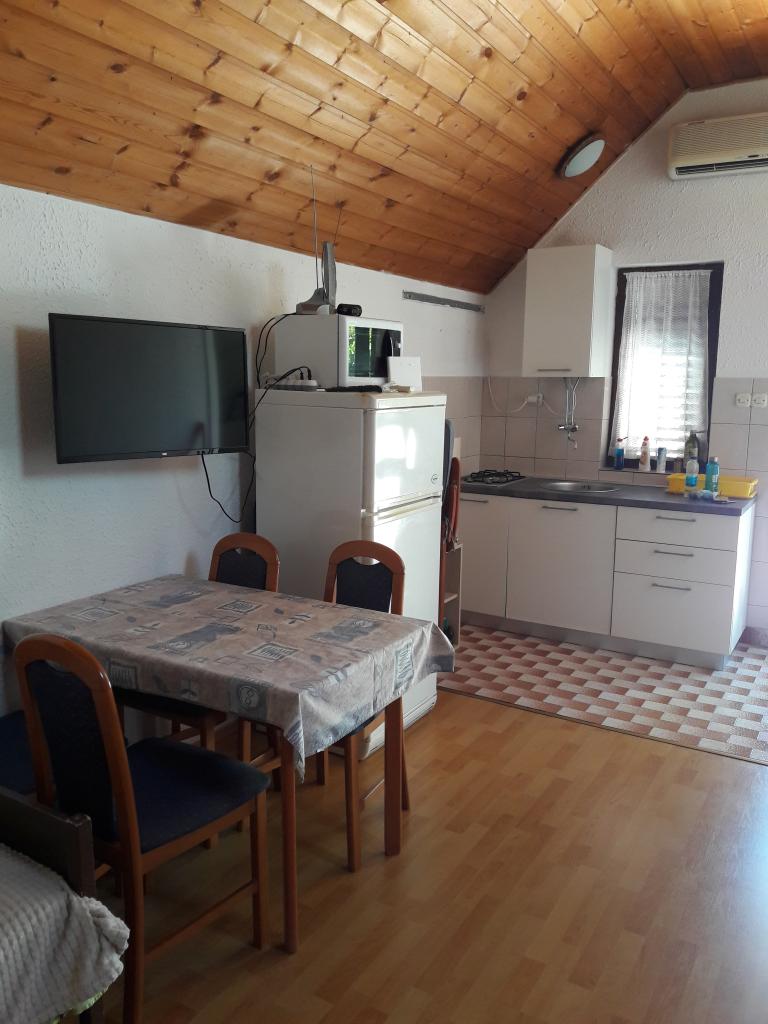 Opis apartamentu typu studio: - powierzchnia apartamentu 30 m2 + balkon z widokiem na morze + taras 10 m2 - łóżko małżeńskie + jedno dodatkowe łóżko - stół z czterema krzesłami i szafa - kuchnia (kuchenka gazowa z 2 palnikami, lodówka) - łazienka z prysznicem - TV - internet - klimatyzacja - naczynia do przygotowywania i serwowania jedzenia i napojów - sztućce w odpowiedniej ilości - pościel i ręczniki w łazience wliczone w cenę - odległość do morza 15 m. Opis apartamentu A3+1 - powierzchnia apartamentu 40 m2 + taras 30 m2 - pokój z łóżkiem małżeńskim - pokój z łóżkiem pojedynczym - kuchnia (płyta indukcyjna, zmywarka, lodówka) z pokojem dziennym - łazienka z prysznicem i pralką - TV - internet - klimatyzacja - naczynia do przygotowywania i serwowania jedzenia i napojów - sztućce w odpowiedniej ilości - pościel i ręczniki w łazience wliczone w cenę - odległość do morza 15 m.