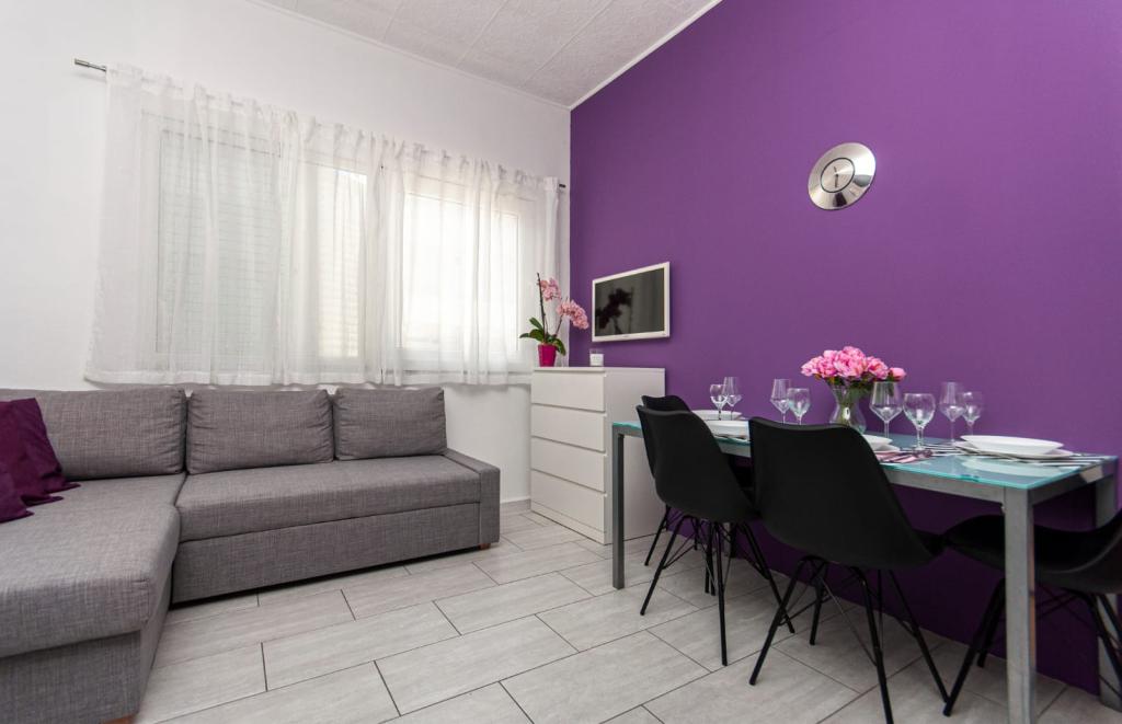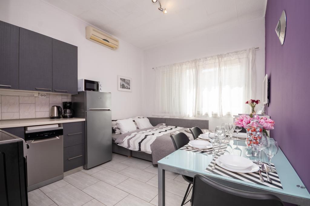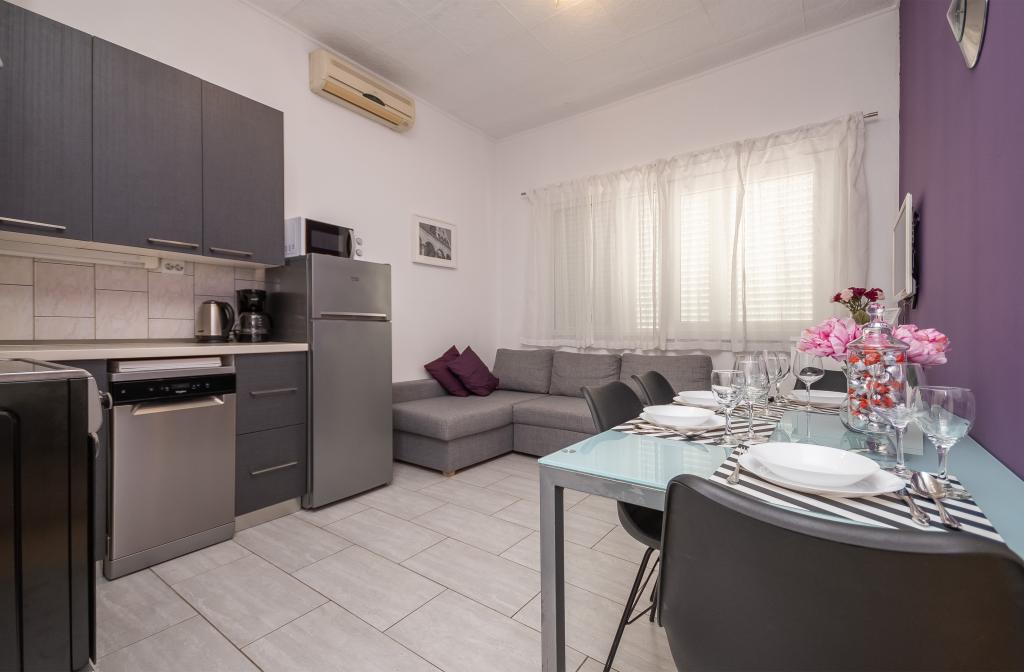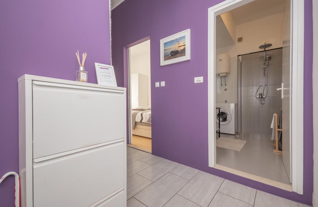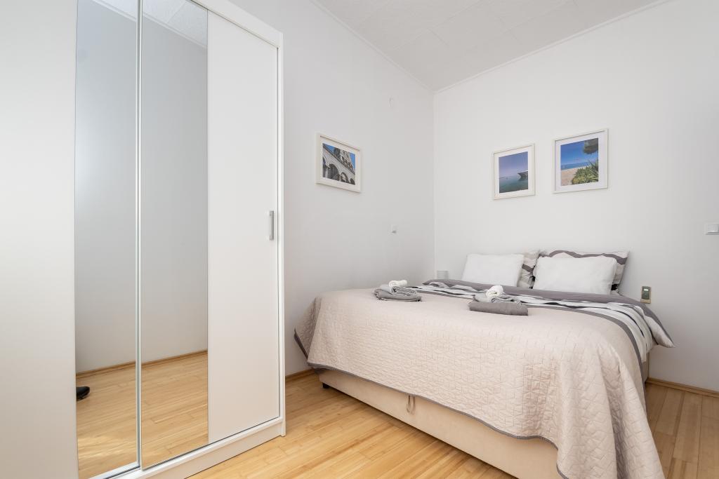 Apartament „B” znajduje się w małym miasteczku Sumpetar Jesenice, niedaleko Splitu i Omiša. Jest oddalony o 20 kroków od kamienistej plaży. Apartament jest częścią domu rodzinnego położonego przy głównej drodze prowadzącej do Dubrownika. Składa się z sypialni, kuchni i salonu, toalety oraz wspólnego balkonu. Jest odpowiedni dla 4 osób. Parking i Wi-Fi są bezpłatne.