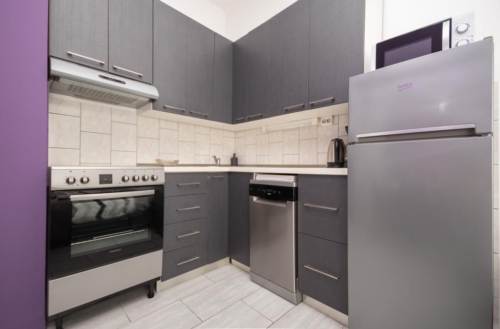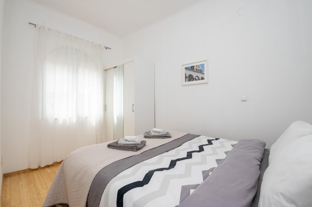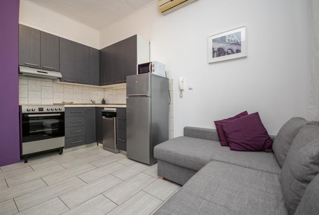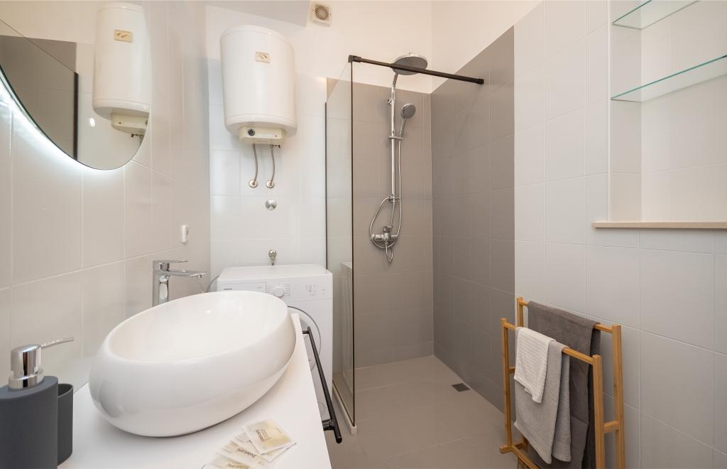 Apartament „B” znajduje się w małym miasteczku Sumpetar Jesenice, niedaleko Splitu i Omiša. Jest oddalony o 20 kroków od kamienistej plaży. Apartament jest częścią domu rodzinnego położonego przy głównej drodze prowadzącej do Dubrownika. Składa się z sypialni, kuchni i salonu, toalety oraz wspólnego balkonu. Jest odpowiedni dla 4 osób. Parking i Wi-Fi są bezpłatne.