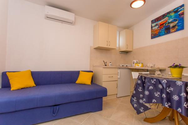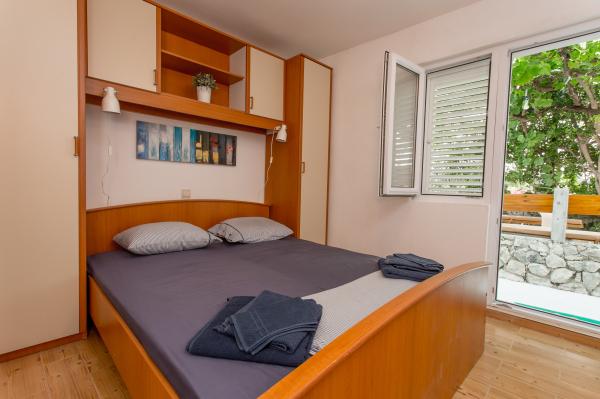 Zarezerwowaliśmy ten piękny mały apartament w ostatniej chwili i byli bardzo szczęśliwi, że znaleźliśmy to tak przyjemne, jak zdjęcia sugerują. Mieszkanie znajduje się w pięknej, prywatnej chronionej zatoce z spokojnej wodzie i piękne pływania. Brak turystów, tylko od czasu do czasu miejscowi o pływać lub towarzyskich w godzinach wieczornych słońca. Kołyszą łodzie, wody i doskonale położony ponton powodują relaksującym otoczeniu. Borjena, właściciel mieszkania, mieszka obok i było fantastyczne i bardzo obfite gospodarzem. Każdego dnia ona przynieść nam lokalnych przysmaków, takich jak grillowane sardynki, świeże figi, brzoskwinie i soczystych moreli domowej roboty ciasta. Pyszne! Mimo, że mieszka bardzo blisko do mieszkania zawsze czuliśmy, że dostaliśmy przestrzeń i prywatność w czasie naszego pobytu. Chociaż Borjena mówi trochę po angielsku, zawsze był ktoś pod ręką (lub Google Translate), aby pomóc nam znaleźć żadnych informacji, które potrzebne. Sam apartament był bardzo czysty i miał wszystko, co potrzebne 'd przez tydzień ' wakacyjnym s. Byliśmy bez transportu, ale autobus był bardzo wygodne (choć droga jest dość głośno) i jest łatwo dostać się do Splitu i Omis - około 20 minut. Istnieje tylko kilka restauracji w okolicy, ale Split i Omis mają mnóstwo przyzwoitych miejsc do jedzenia. Chociaż często gotowane ryby i warzywa na zewnątrz grill. Okazało się też lokalizacja doskonałe miejsce na być oparta na zwiedzanie wyspy bardziej turystyczne Brac i Hvar. Jeśli szukasz na relaksujący i autentycznego chorwackiego wakacje, to jest to miejsce do odwiedzenia!