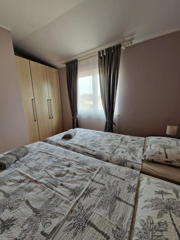 Gustownie urządzone iw pełni wyposażone apartamenty w cichej strefie, w odległości około 400 metrów od plaży i 200 m od centrum. Dom posiada 2 apartamenty, zarówno na pierwszym piętrze. Każdy z nich ma jedną sypialnię salonu (2 z 2 łóżka), kuchnia, łazienka i taras. Goście mają dostęp do pralki, kuchenka mikrofalowa, ekspres do kawy, telewizję satelitarną, internet, grill i parking. Apartamenty są klimatyzowane, bardzo wygodne, z dużymi tarasami i piękne meble. Pobyt w tym domu z pewnością zachwyci was.