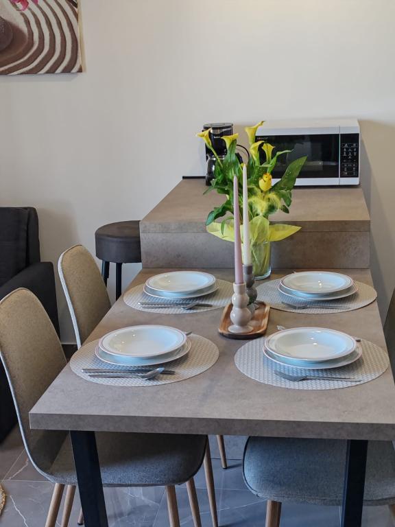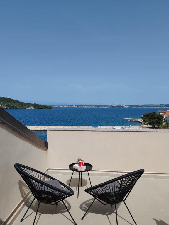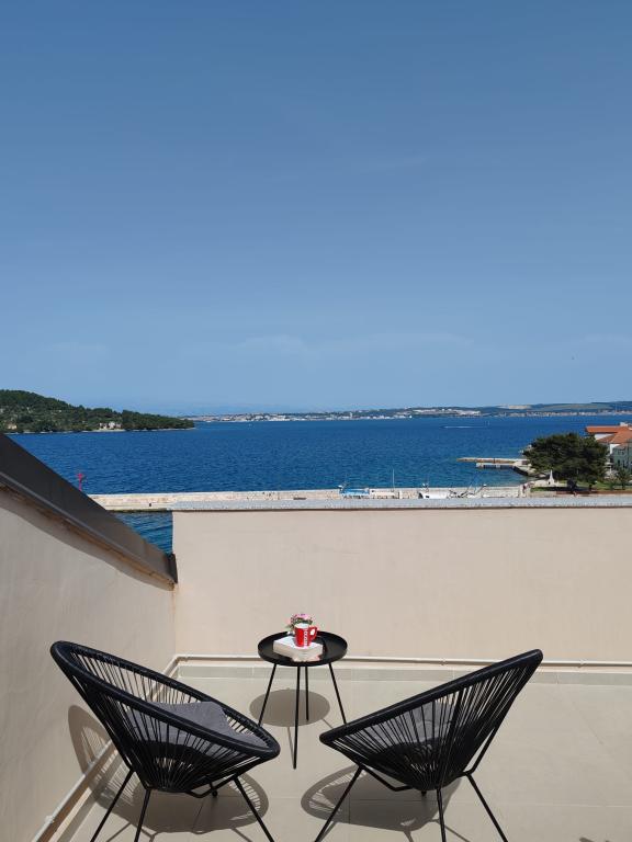 Apartament Nina (A6) położony jest w spokojnej wiosce Kali na wyspie Ugljan. Apartament znajduje się 100 metrów od plaży, a z tarasu roztacza się widok na morze, wyspę Ošljak, Zadar i Kanał Zadarski. Zaletą jest zupełnie nowy i komfortowy apartament z 3 sypialniami, dużym salonem, kuchnią i 2 dużymi łazienkami. Aby uczynić Państwa pobyt możliwie najprzyjemniejszym, zrelaksujcie się i skorzystajcie z zadaszonego tarasu. Posiadamy łóżeczko i krzesełko dla Twojego dziecka. Minimalny pobyt 4 dni. Apartament Słoneczny (A2) to nowy apartament składający się z 1 sypialni, kuchni i salonu, łazienki oraz osobnej toalety. Z balkonu roztacza się piękny widok na morze. Minimalny pobyt 3 dni. Apartament Azure (A4) jest idealnym miejscem na spokojny wypoczynek z rodziną lub przyjaciółmi. Rozkoszuj się niesamowitym widokiem na morze z przestronnego tarasu, zrelaksuj się w komfortowym wnętrzu z dwiema sypialniami i nowoczesną kuchnią. Obiekt położony jest zaledwie dwie minuty spacerem od plaży. Dodatkowe łóżko i łóżeczko dziecięce są dostępne na życzenie. Minimalny pobyt 4 dni.