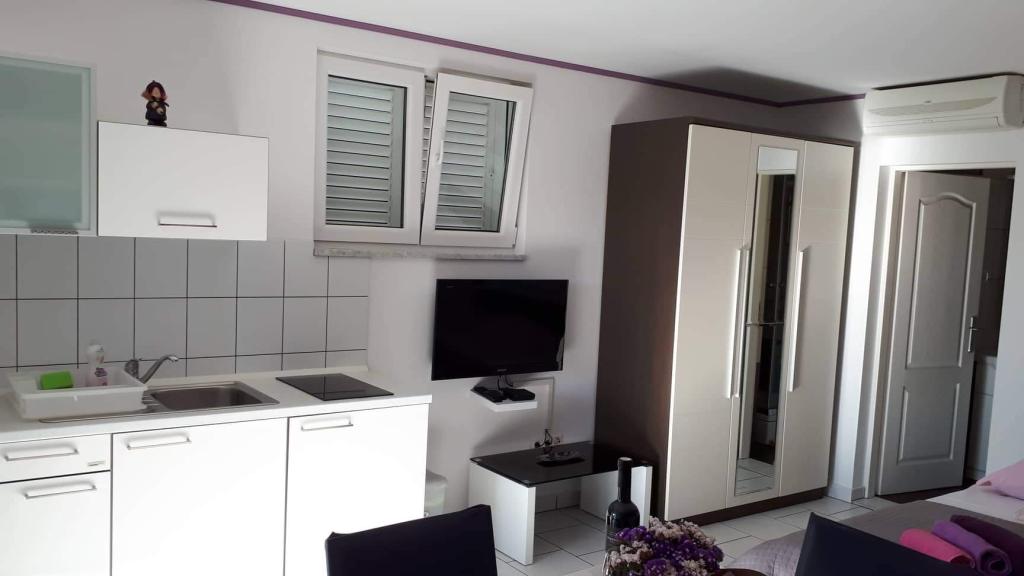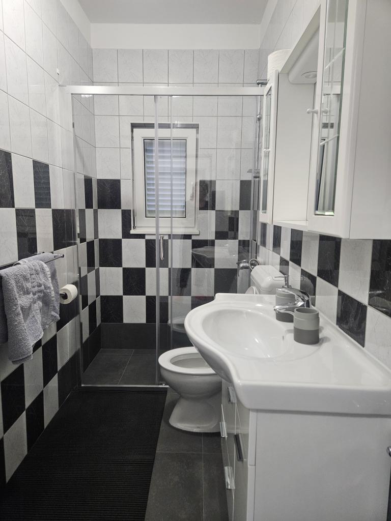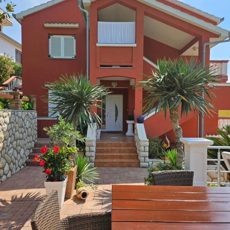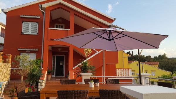 Apartamenty Ana Rab to dom z pięknym widokiem, położony w spokojnej części wyspy Rab, Kampor, zaledwie 70 metrów od pierwszej piaszczystej plaży. Nowocześnie wyposażone apartamenty z własnym wejściem i prywatnym tarasem, a także pięknie wyposażony ogród z głównym tarasem ogrodowym z kominkiem i prysznicem z gorącą wodą. W obiekcie znajduje się prywatny parking. W odległości 150 metrów znajdują się restauracje, sklep spożywczy, dwie kawiarnie, piekarnia, salon fryzjerski, kort tenisowy, centrum nurkowania, boisko do koszykówki i mini-piłki nożnej, biuro turystyczne z biurem wymiany. Witaj!