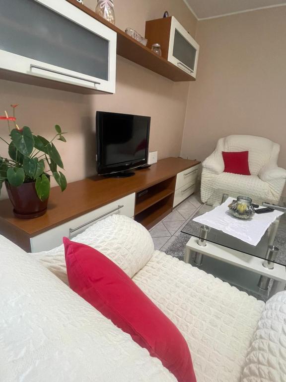 Czytaj więcej Kwater- przedpłata jest płatna przy rezerwacji w następujący sposób: - za apartament dla 2 osób wynosi 150 €, za apartament dla 4 i 6 osób wynosi 200 € - reszta płatna po przybyciu na miejsce - klimatyzacja nie jest wliczona w cenę apartamentu, płacisz 1 € = 1 godzina, jeśli jest używana - sprzątanie końcowe wynosi 50 € za apartament dla 4 i 6 osób oraz 30 € za apartament dla 2 osób - wejście do mieszkania po godzinie 14, a wyjście z mieszkania do godziny 10