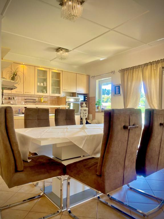Tego lata zatrzymaliśmy się na około 3 tygodnie z kilkoma rodzinami w całym domu. To była nasza pierwsza podróż uliczna na wyspę Rab i jesteśmy zachwyceni! Marija i jej rodzina przywitali nas ciepło i zawsze byli bardzo przyjaźni, chętnie rozmawialiśmy ze wszystkimi. Usługa nawet ze świeżymi ręcznikami i pościelą. Na życzenie możesz nawet skorzystać z pralki. Jeśli chcesz, możesz nawet wypożyczyć łódź od swojego syna Mario lub dać się zabrać do małych zatoczek. Dom jest bardzo zadbany i codziennie utrzymywany w czystości. Dom jest schowany z tyłu, ale nadal masz morskie powietrze. Wszystkie apartamenty posiadają klimatyzację w części dziennej, w przypadku mniejszych mieszkań klimatyzacja jest wystarczająca i najwyższa. Niestety klimatyzacja w apartamencie 6 osobowym na 1 piętrze chłodzi tylko salon, do sypialni nie ma już chłodnego powietrza. Na początku naszego urlopu klimatyzacja nie była potrzebna, bo w nocy do pokoi napływało chłodne powietrze, jeśli w nocy nie wychładzało się, to było już bardzo ciepło. Udogodnienia w kwaterach były bardzo dobre, wszystko było obfite, jeśli czegoś potrzebowałeś, po prostu zapytaj Mariję i masz to. Basen był również bardzo ładny, ale nie ma zacienionych miejsc (przywieźliśmy ze sobą parasole), korzystaliśmy z basenu wcześnie rano lub późnym popołudniem. Było też wspaniałe zadaszone miejsce do grillowania, wcześniej zapytaliśmy Mariję czy jest możliwość grillowania, tak aby każdy w domu miał możliwość z niego skorzystać. Kilka metrów do morza, portu, kawiarni i sklepów, więc mogliśmy zostawić samochód. To były idealne wakacje, wrócimy. Dzięki za ten miły czas