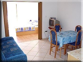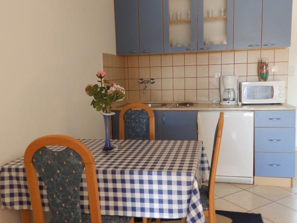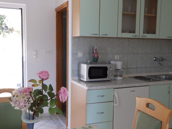 Apartamenty znajdują się w małej, spokojnej wiosce rybackiej Barbat na wyspie, położony 100 m od morza, z pięknym widokiem na zatokę Veli Mel. Budynek jest z czterech miejsc Kampor 150 m i 5 km od starego miasta Rab. Mieszkania są w pełni wyposażone, nowocześnie urządzony dla przyjemnego pobytu. Teren budynku jest urządzony z dużą ilością zieleni i ogrodów, które sprawia, że obiekt szczególnie atrakcyjne. Goście mogą korzystać z grilla w ogrodzie i parku dla dzieci.