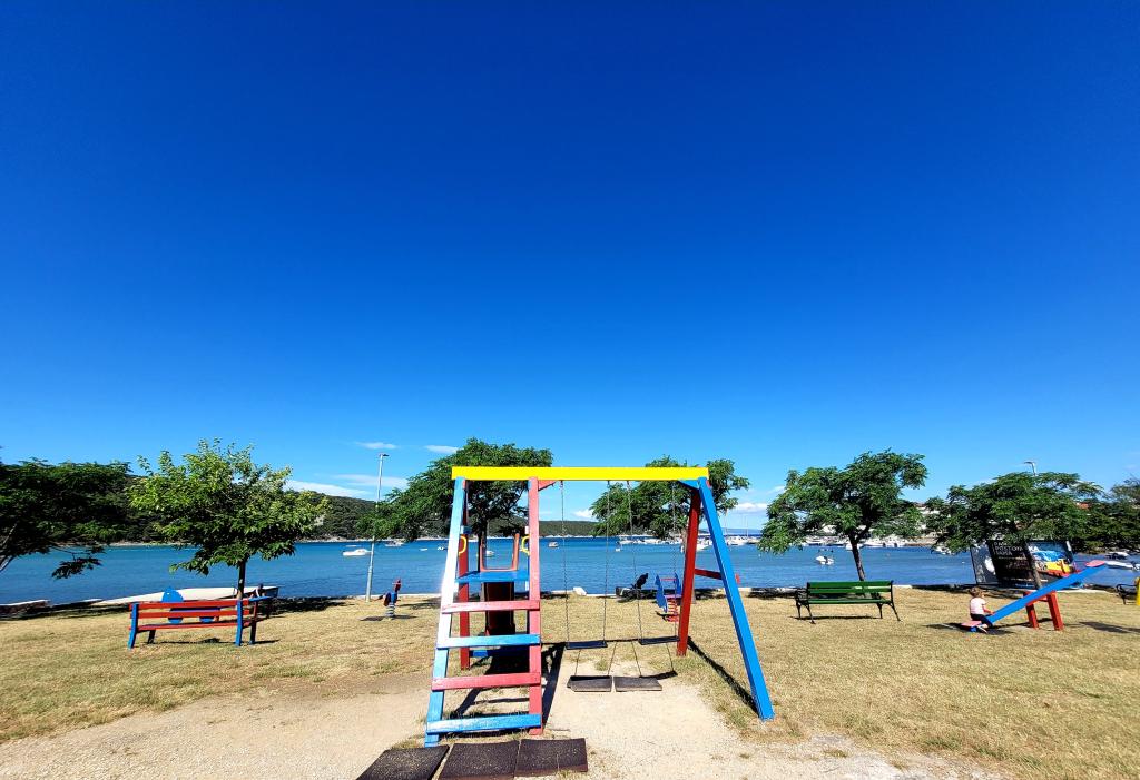 Willa Marija położona jest w samym sercu małej wioski rybackiej Kampor. Do domu prowadzi droga, na której znajduje się kilka miejsc parkingowych. Wszystkie apartamenty są w pełni wyposażone i oferują niepowtarzalny widok na morze, oddalone zaledwie o 30 metrów. Ogromną zaletą tej przestrzeni jest możliwość swobodnej zabawy Państwa dzieci na naszym podwórku (ogrodzie), otoczonym kwiatami, lokalnymi owocami i różnorodnymi zabawkami dla dzieci.