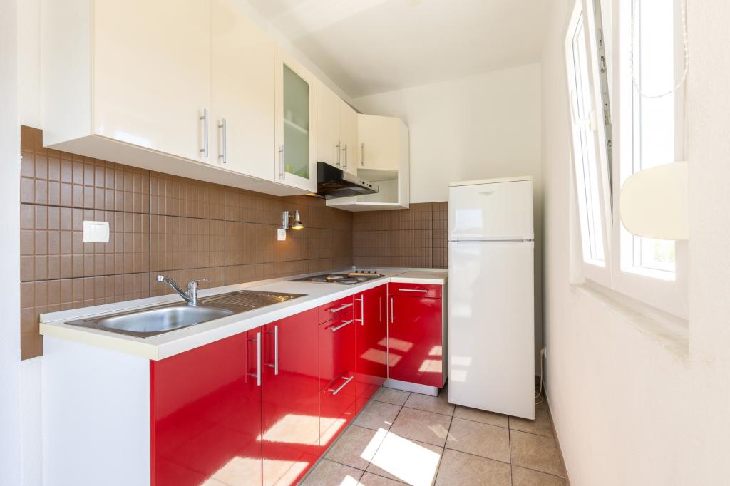 Kopletno mieszkania nowe. Nikt nigdy nie odwiedził ich. Obiekt położony jest 80 m od morza, 2 minuty spacerem od plaży w cichej zatoce Kanica, w pobliżu Rogoznica.