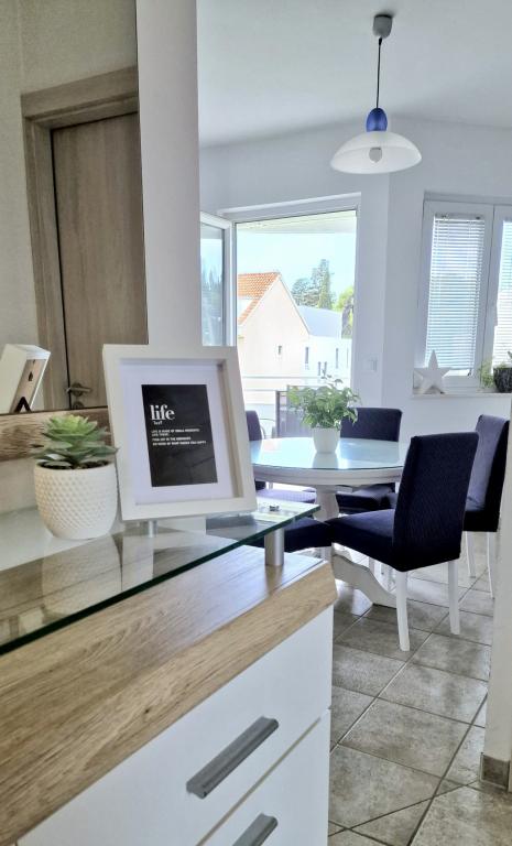 Ładnie urządzone mieszkanie w Kastel Luksic, znajduje się 80 metrów od plaży. Apartament przeznaczony jest dla 2 osób 2 Zaletą mieszkania jest w pobliżu głównych miast Split i Trogir, które są bogate w jego dziedzictwa kulturowego. Obiekt położony jest 10 minut jazdy od lotniska, 2 min spacerem do centrum, sklepów i kawiarni i restauracji. Miłośnicy spacerów mogą cieszyć się długie spacery nad morzem przechodzącej przez 7 zamków.