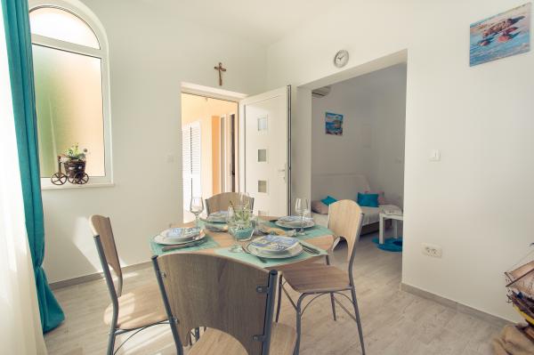 Apartamenty Kampanel znajdują się w samym sercu Kaštel Kambelovac. Apartamenty są nowe iw pełni wyposażone. Apartamenty składają się z dwóch sypialni, w pełni wyposażonej kuchni, łazienki i tarasu. W pobliżu znajduje się duży supermarket z sklepem mięsnym. Apartamenty znajdują się zaledwie kilka minut spacerem od plaży, baru, restauracji. Przystanek autobusowy znajduje się 20 m od nieruchomości, jako poczta i bank. Kastela znajduje się pomiędzy dwoma miastami UNESCO, Split i Trogir, które znajdują się zaledwie 10 km od hotelu.