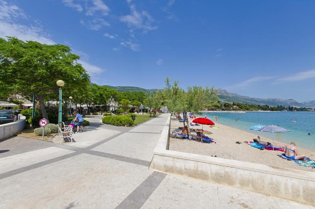 W domu są dwa mieszkania, oceniać apt. 1, który jest idealny. Posiada dwa tarasy, jeden z kompletem wypoczynkowym z widokiem na morze. Mieszkanie jest czyste i nowoczesne. Klimatyzacja nie tylko w kuchni, ale jeśli pozostawić drzwi do pokoju otwarty, więc wystarczy. Free Wifi. Dom stoi przy drodze wiejskiej, gdzie dzień i noc, ruchu, ale nasze mieszkanie zostało skierowane do drugiej strony, więc nic nie przeszkadza nam. Nie daleko jest handel. Super jest też basen z leżakami i prysznicem. Do morza jest około 200 m, ale zamiast tego poszedł nieco dalej, nie było lepszego wejścia do wody. Im bliżej plaży były w morzu większych kamieni. W przeciwnym razie, obie plaże. W pobliżu znajduje się kilka restauracji. Wzdłuż plaży dojść do zabytkowej części miasta, coś dla romantyków. Istnieją również sklepy, restauracje, wypożyczalnia rowerów. Na wycieczce w odległości krótkiego spaceru do Split i Trogir. Blisko do lotniska Split, więc samoloty przelatywały nad nami, ale że my nawet nie słuchasz. Pan właściciel Zoran jest bardzo przyjazny i pomocny. Zostaw nam bardzo. Myślę, że apt. 1 zasługuje na 4 gwiazdki. Chciałbym polecić go wszystkim :-)