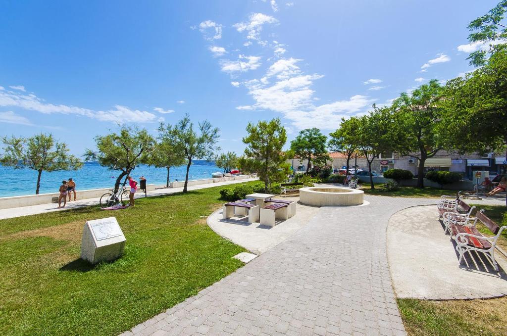 Byliśmy w obu mieszkań. Standard mieszkania jest bardzo wysoki, prawdziwa norma europejska (moim zdaniem te 3 gwiazdki są lepsze niż 4 w Niemczech i Polsce). Wszystkie urządzenia były dostępne, wszystkie sklepy i awaryjne, piekarnia. Niesamowite miejsce w nowym budynku, lotnisko jest kilka kilometrów stąd. To bardzo romantyczne miejsce, można chodzić wieczorami lub spróbuj jogging wcześnie rano w pobliżu morza przez kilka kilometrów alei wokół ekskluzywne wille. Lokalizacja jest doskonała, 10 minut do Trogiru samochodem lub autobusem i 20 minut do Splitu. Jeśli lubisz małe i bardzo pięknych starych miast o stoczniach (wszystkich typów łodzi, nawet tych ekskluzywnych, można zwiedzić wszystkie wyspy z tego miejsca - Biševo, Vis, Hvar, Šolta, Blue Lagoon, Pakleni i więcej). Istnieje jeden wycieczki do wszystkich parków narodowych (Jeziora Plitwickie są fantastyczne). To naprawdę trudne do opisania tego miejsca i że właściciel mieszkania - dżentelmen. Urlop w tym miejscu dla naszej rodziny (7 osoby) był najlepszy w moim życiu. Pojechaliśmy 1800 km, ale było warto! Mam nadzieję, że pewnego dnia wrócę do tego samego miejsca! Dziękuję Zoran!