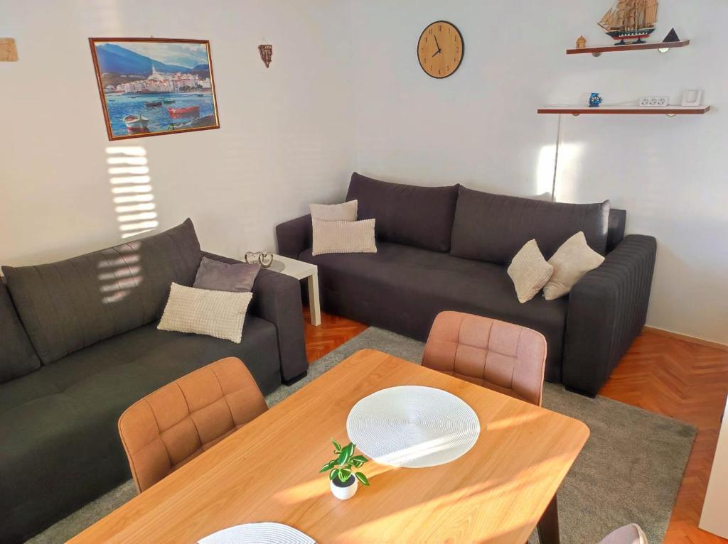 Apartament Riva w miejscowości Klenovica koło miasta Novi Vinodolski położony jest zaledwie kilka kroków od morza. W pobliżu znajdują się wszystkie niezbędne udogodnienia, a plaże są oddalone o zaledwie kilka minut spacerem wzdłuż morza. Oba apartamenty są w pełni wyposażone i zawierają wszystko, czego potrzeba do przyjemnego wypoczynku. Apartament na parterze: WiFi, IPTV, telewizja satelitarna, Netflix, smart TV UHD, grill, pralka, wyposażona kuchnia, przestronny taras i bezpłatne miejsce parkingowe. Apartament może pomieścić do 5 osób, w pokoju znajduje się łóżko o wymiarach 160x200 cm i łóżko o wymiarach 80x200 cm, a w salonie wygodna rozkładana sofa o wymiarach 150x200 cm. Apartament na pierwszym piętrze: WiFi, IPTV, Netflix, smart TV UHD, grill, wyposażona kuchnia, przestronny taras do wypoczynku i bezpłatne miejsce parkingowe. Apartament może pomieścić maksymalnie 5 osób, w pokoju znajduje się łóżko o wymiarach 160x200 cm, a w salonie znajdują się 2 nowe wygodne sofy o wymiarach 160x200 cm.