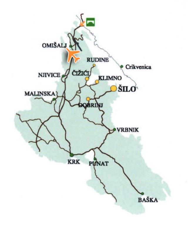 Plaża i kemping z restauracją, sklepem i barem plażowym znajdują się w odległości 250 m, a kolejny sklep, kawiarnia i 2 restauracje są oddalone o 600 m, w centrum miasta. W zatoce znajduje się również cukiernia, piekarnia, kawiarnie i kilka restauracji. Miejscowość Malinska oddalona jest o 12 km i oferuje wszystkie udogodnienia, takie jak restauracje, bary, apteki, stacja benzynowa, supermarkety, dyskoteka, hotele, dworzec autobusowy i narty wodne. Odległość od lotniska w Rijece wynosi 14 km.