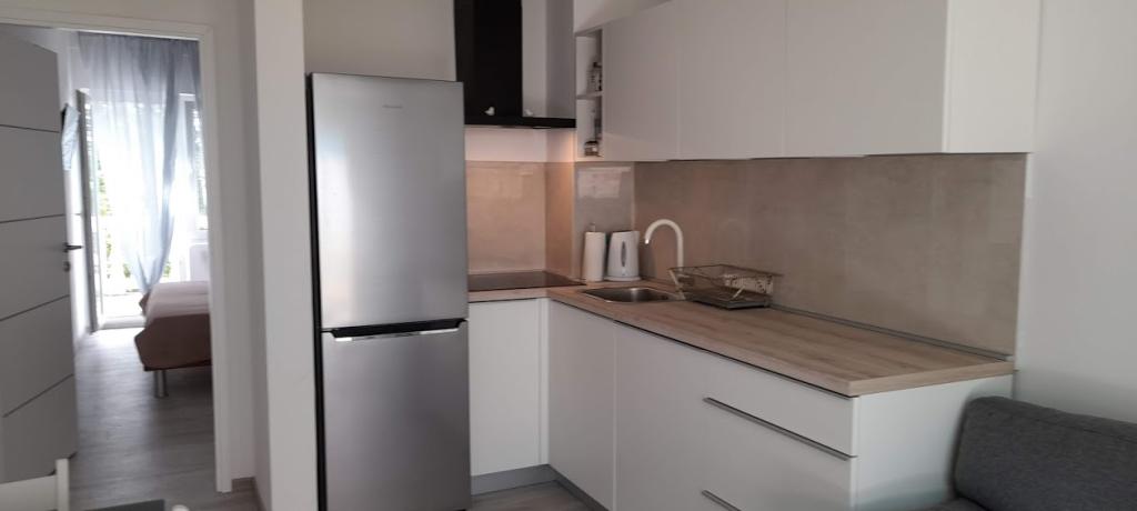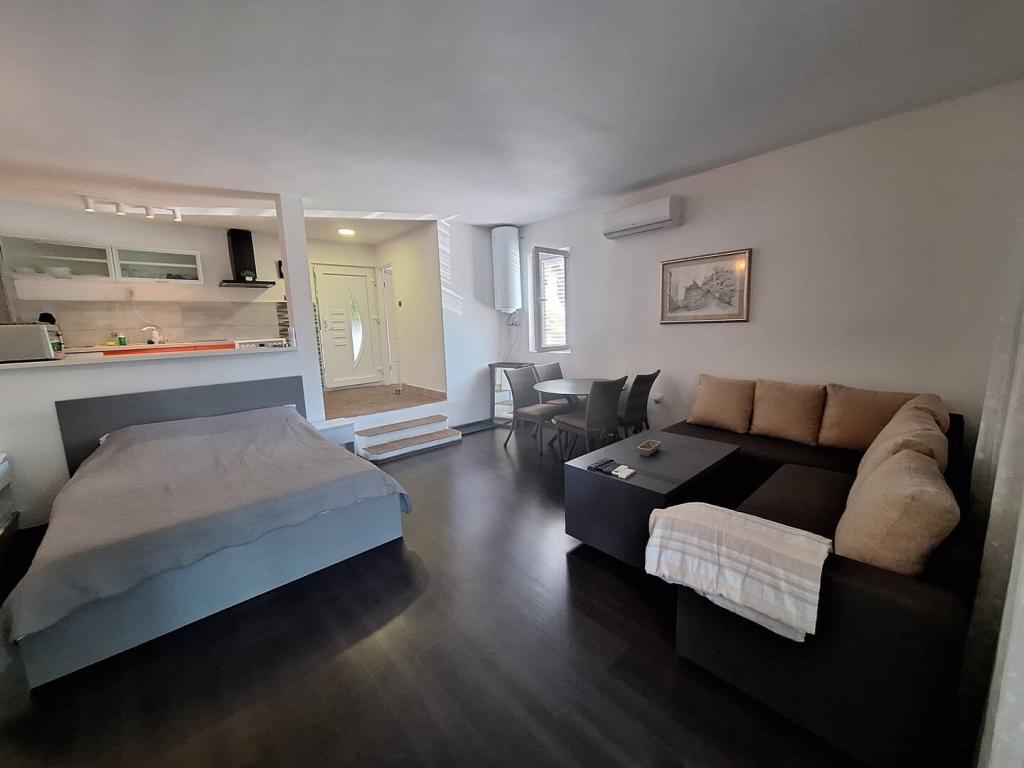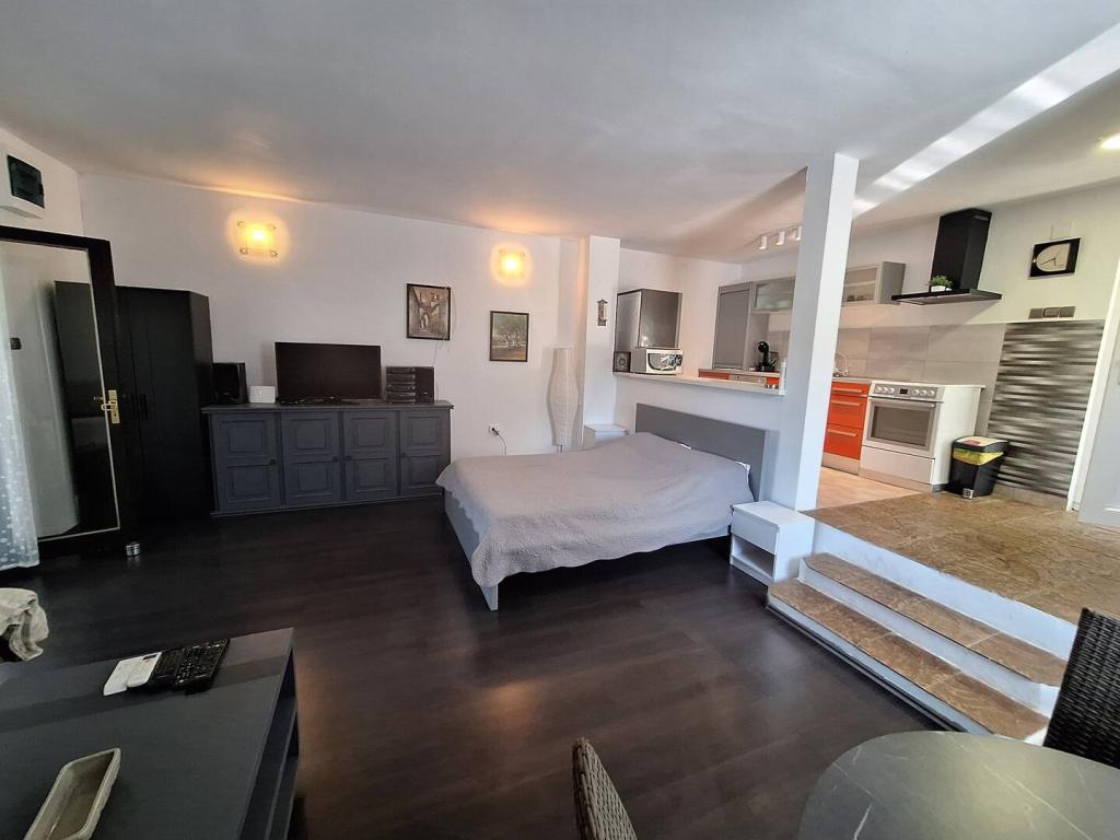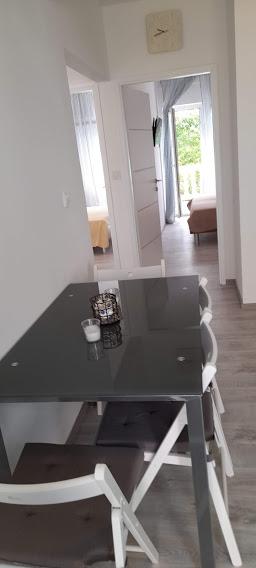 Nasz dom w Klimnie w zatoce Soline, znanej z leczniczego błota i jaskini Biserjuka, składa się ze studia dla 2 osób na parterze z tarasem o powierzchni 20 m2 oraz apartamentu na 1. piętrze z osobnym wejściem i 2 tarasami dla 4 osób w standardzie 3 gwiazdek, w spokojnym miejscu otoczonym przyrodą. Posiadamy ogród z grillem opalanym drewnem, z którego można korzystać bezpłatnie, oraz prysznic na świeżym powietrzu. Znajdujemy się 250 m od morza. Duży apartament składa się z przedpokoju, łazienki z dużym prysznicem, 2 sypialni, każda z telewizorem, klimatyzacją i dostępem do tarasu ze stołem i krzesłami do siedzenia oraz leżakami, kuchni połączonej z salonem z wyjściem na kolejny taras z meblami wypoczynkowymi. Apartament typu studio o powierzchni 50 m2 posiada małą łazienkę oraz taras ze stołem, krzesłami i leżakiem. Kuchnie w obu apartamentach wyposażone są w lodówkę, zamrażarkę, kuchenkę mikrofalową, płytę ceramiczną, okap, toster, czajnik, ekspres do kawy, wszystkie sztućce i suszarkę do włosów. Wi-Fi jest bezpłatne. Zwierzęta domowe na życzenie. Bezpłatne korzystanie z pościeli, ręczników i klimatyzacji.