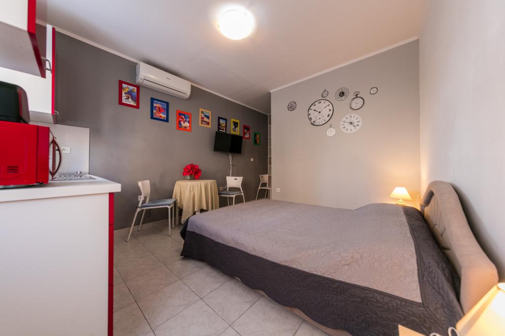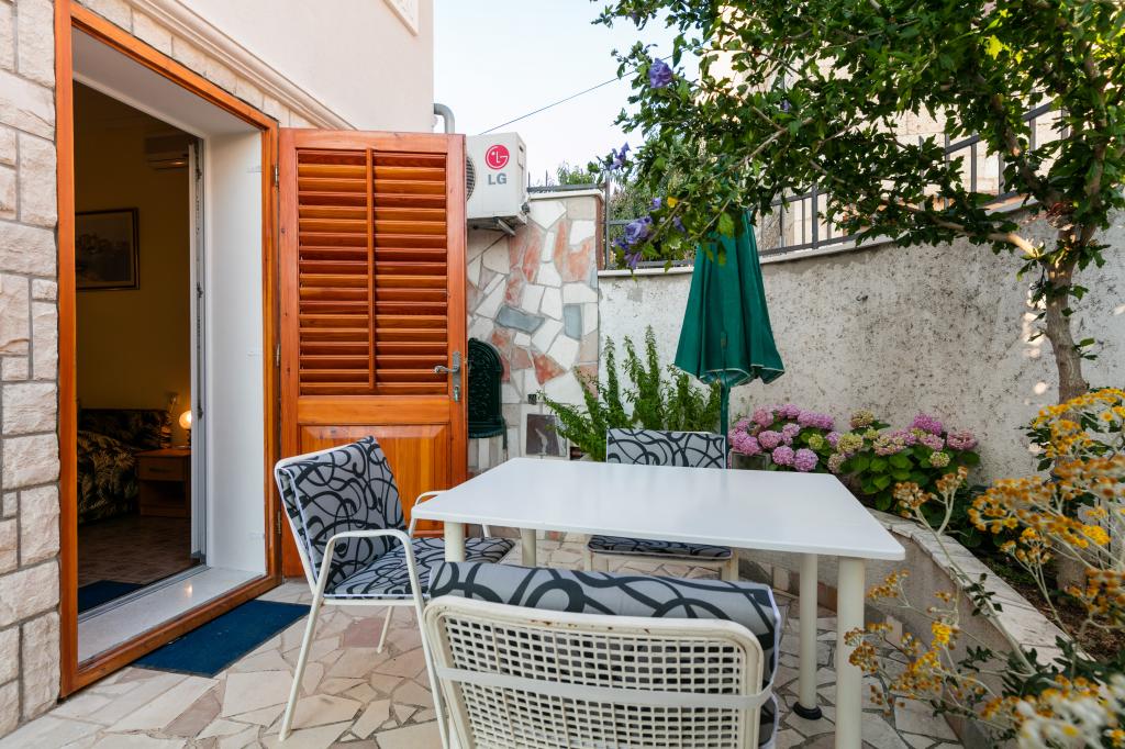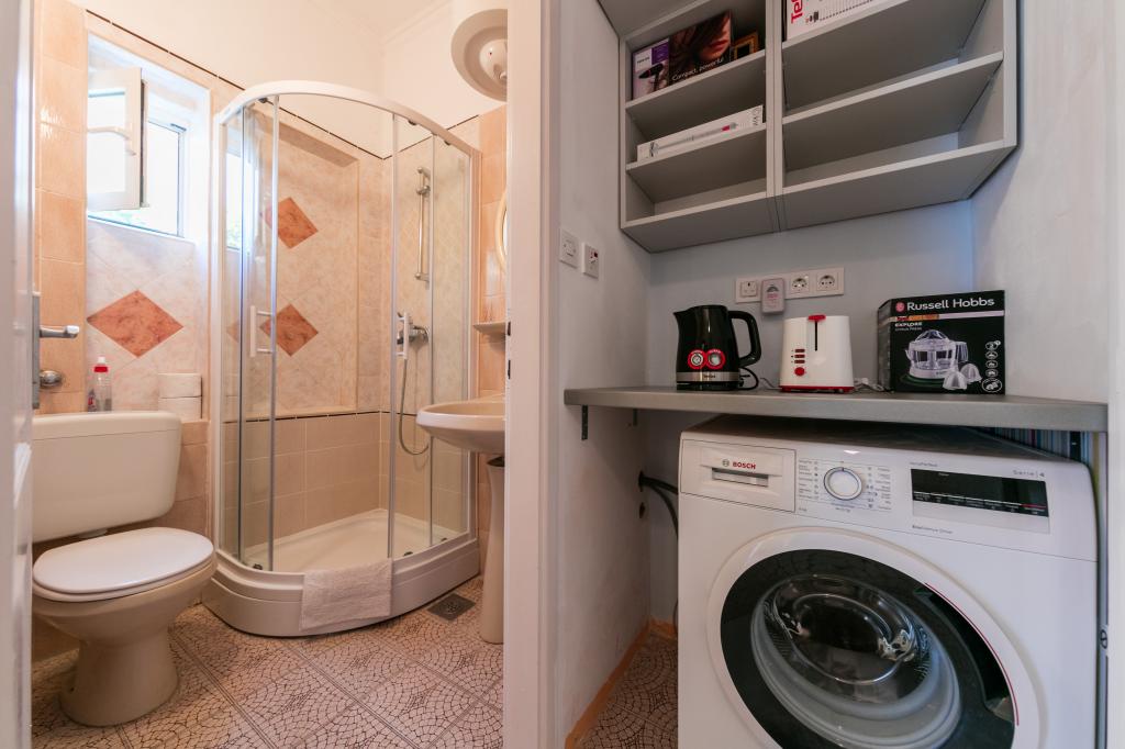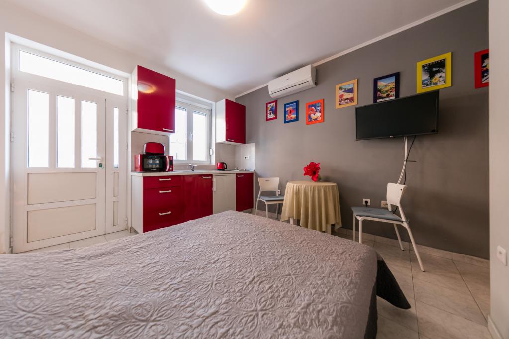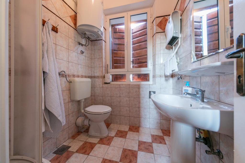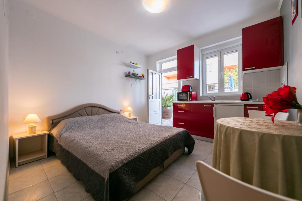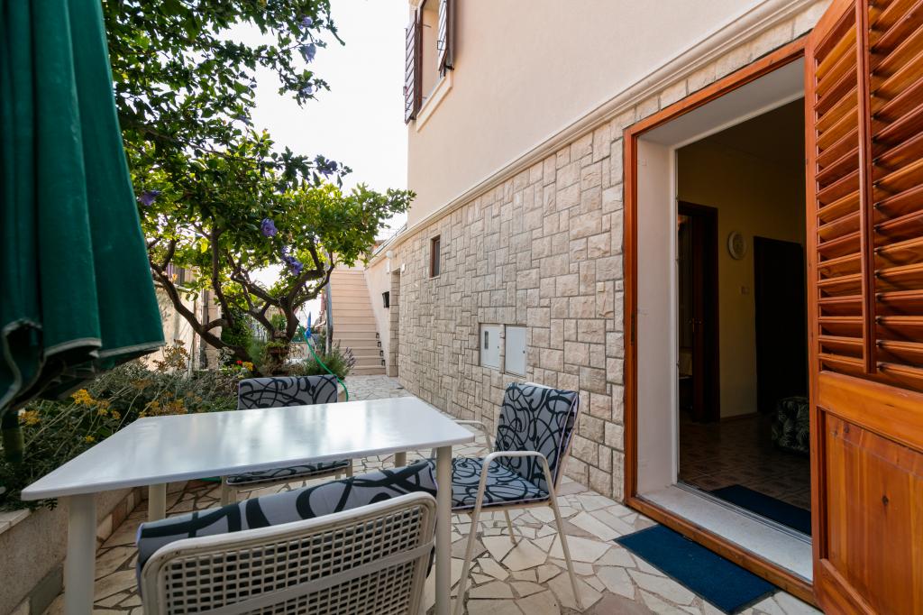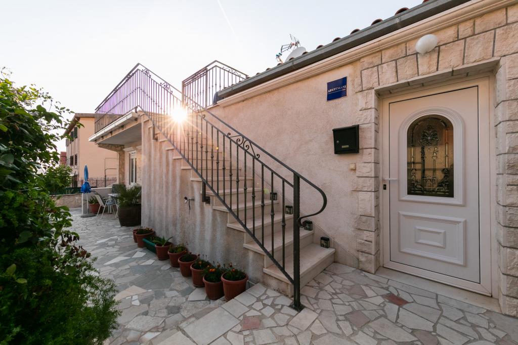 Dom Kastelani został zbudowany jeszcze w 1939 roku, kilkakrotnie remontowany, aw 2016 roku otrzymał fasadę termiczną, dzięki czemu przyjemnie się w nim przebywa podczas upalnych letnich miesięcy. Oferujemy 3 apartamenty i 1 apartament typu studio nazwany imieniem naszych wnuków: Alen, Izabela, Roko i Sofia. Kawalerka Sofia i apartament Alen znajdują się na parterze i są przeznaczone na pobyt dla 2 osób; Apartament Izabela znajduje się na 1 piętrze (2 + 1), a apartament Roko na 2 piętrze (2 + 1). Wszystkie jednostki są klimatyzowane, oferują bezprzewodowy internet, parking publiczny znajduje się 100 m od domu, również parking prywatny (rezerwacja + opłata). Taras do opalania i relaksu znajduje się na poziomie 1 piętra naszego budynku i jest dostępny dla gości 1 i 2 piętra. Apartamenty Kastelani znajdują się w spokojnej okolicy, 300 m od centrum, pięknej plaży "Kamenice" i miejskiej plaży "Lucica" oraz centrum nurkowego B-24.
