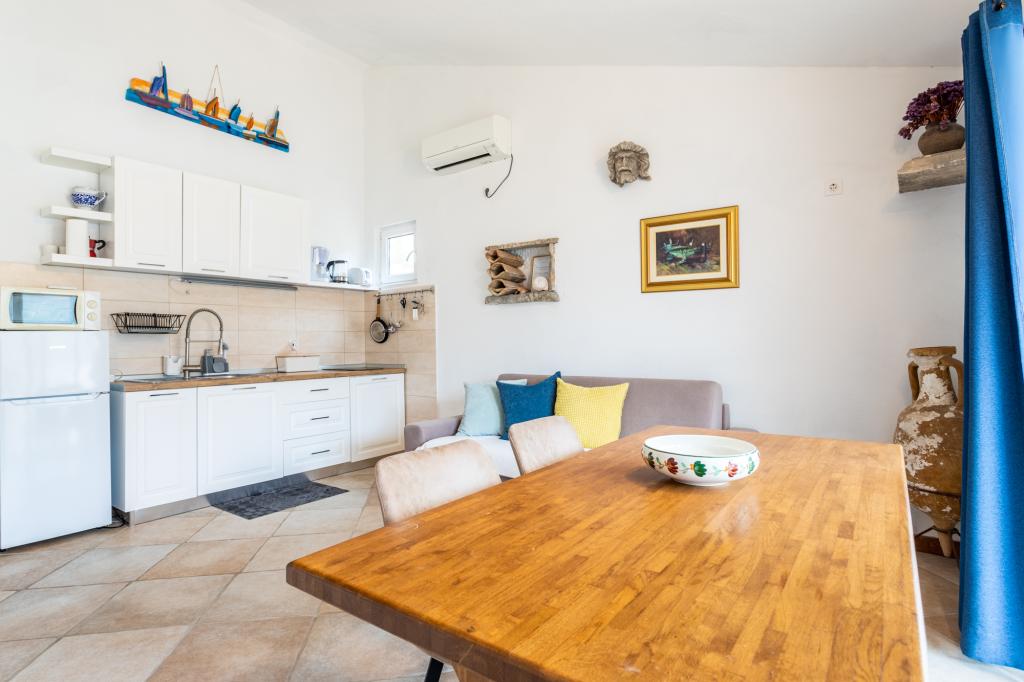 Apartamenty Prvan znajdują się na wzgórzu, na wschód nad hotelem Biševo, 350 m od plaży i 500 m od centrum. Dzięki położeniu na wzniesieniu, ze wszystkich tarasów apartamentów roztacza się niepowtarzalny widok na falę Komi, miasto, okoliczne góry i klasztor św. Mikołaja. Dom otoczony jest zielenią, a naturalny cień zapewniają karob, oliwka, cytryna, wawrzyn, bugenwilla, cyprys i rośliny śródziemnomorskie. Z bazy noclegowej oferujemy dwa apartamenty (54m2) dla dwóch osób i jeden dla czterech osób (pow. 96m2). Wszystkie apartamenty wyposażone są w klimatyzację, bezprzewodowy internet, w pełni wyposażoną kuchnię oraz ręczniki i pościel. Przed domem znajduje się bezpłatne miejsce parkingowe.