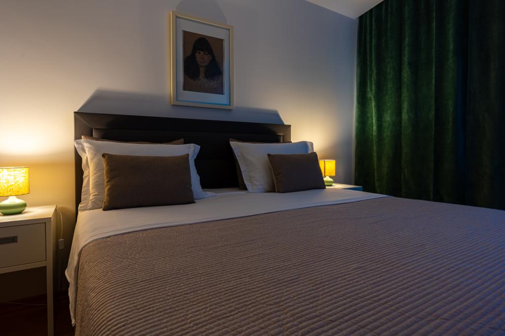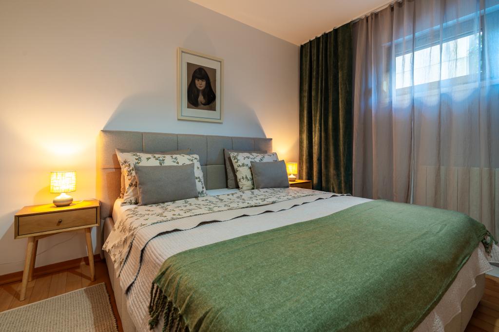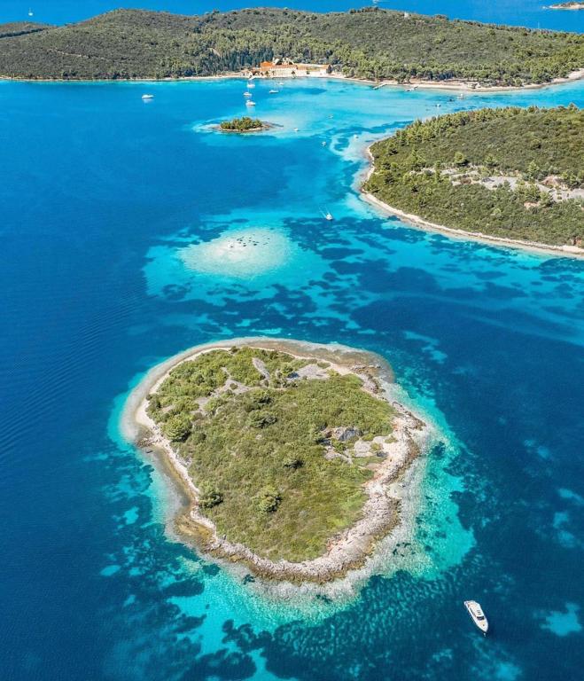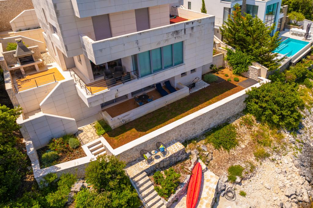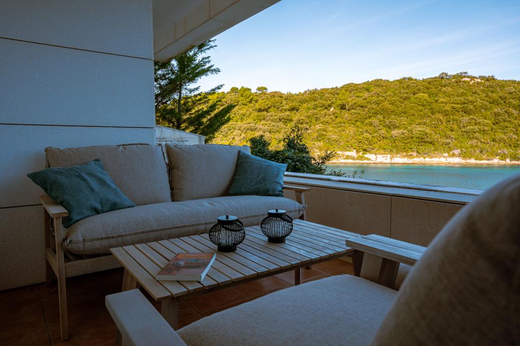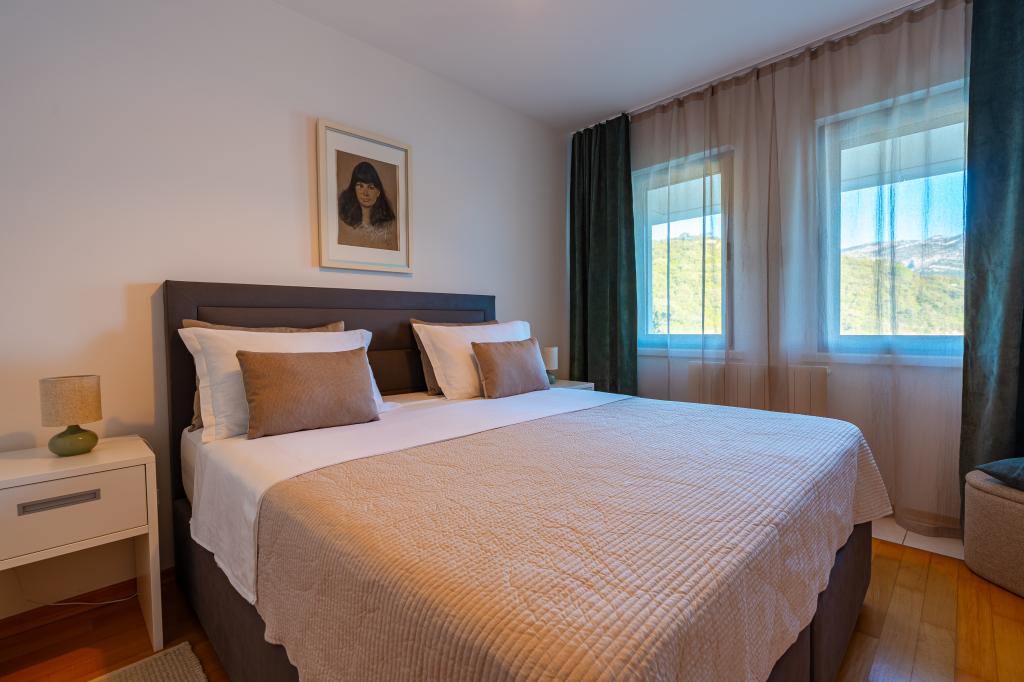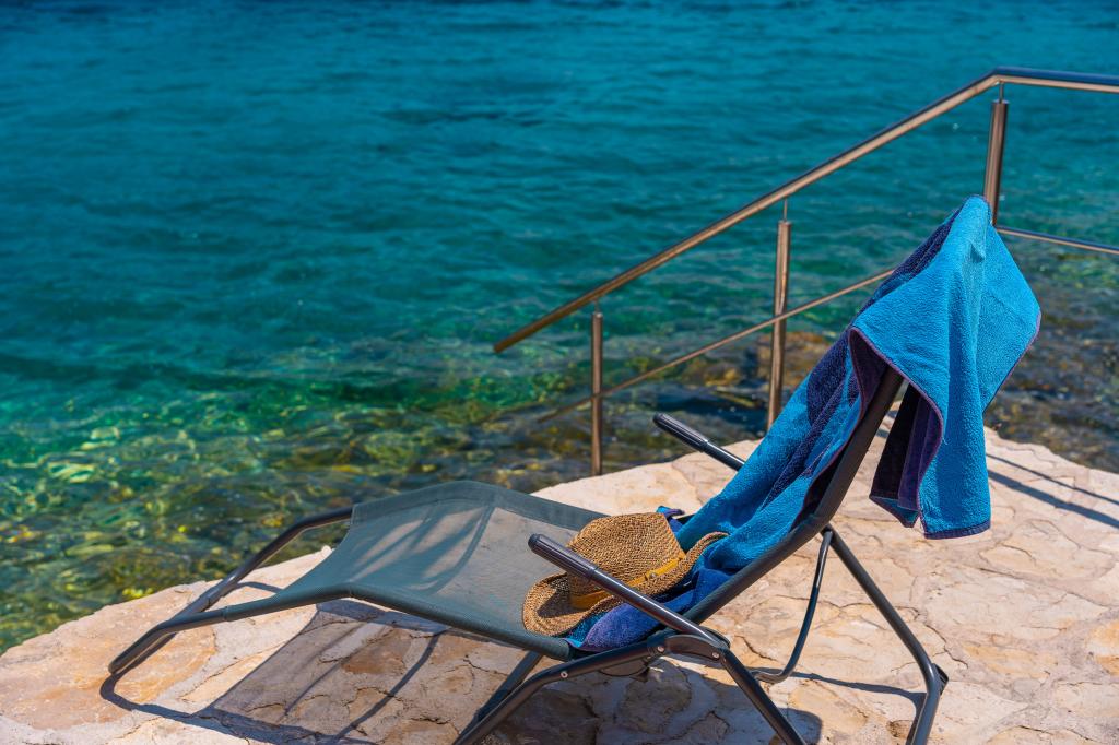Villa Avantgarde - apartament bezpośrednio nad morzem dla 4 osób - bardzo cicha zatoka - wyspa Korčula - Chorwacja Jest dziełem znanego chorwackiego i światowej sławy architekta. Położony jest w spokojnej zatoce, ok. 4 km od centrum miasta. W willi mają Państwo do dyspozycji komfortowe mieszkanie o powierzchni ok. 100 m2, na który składają się 2 sypialnie, łazienka oraz salon z dobrze wyposażoną kuchnią, jadalnią i salonem, z którego jest wyjście na przestronny taras z bezpośrednim wyjściem na prywatną plażę. Plaża znajduje się 9 m od apartamentu. W Willi jest tylko jedno mieszkanie do wynajęcia. Jest otoczony zadbanymi trawnikami, zielenią, śpiewem ptaków i morzem. Do dyspozycji gości jest zamknięty prywatny parking. Sypialnia, pokój dzienny, jadalnia i taras wychodzą bezpośrednio na morze. Można z niego korzystać przez cały rok, gdyż wyposażony jest w centralne ogrzewanie.