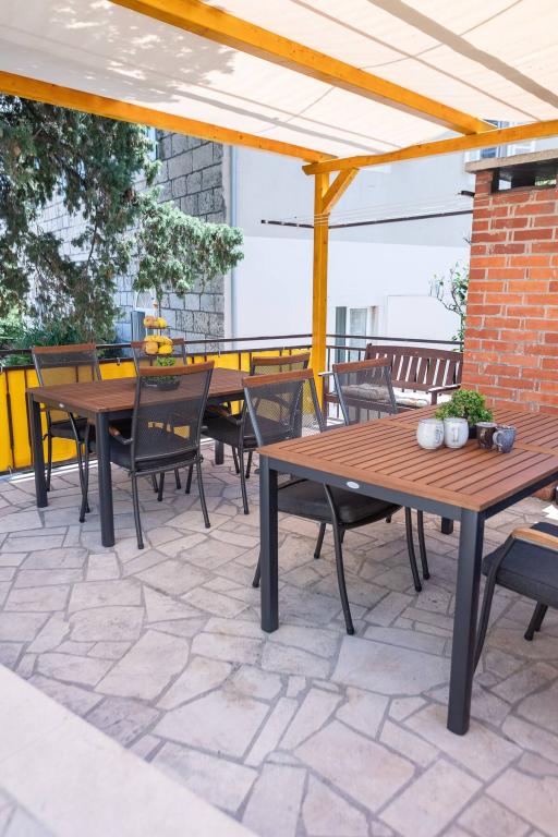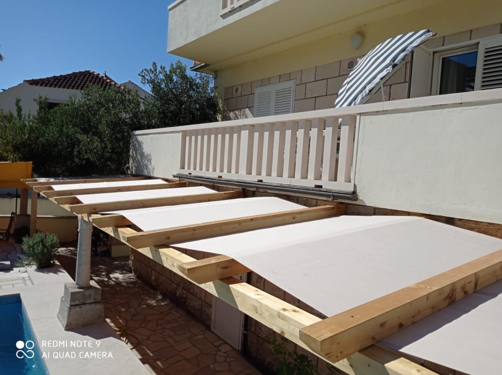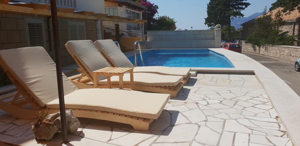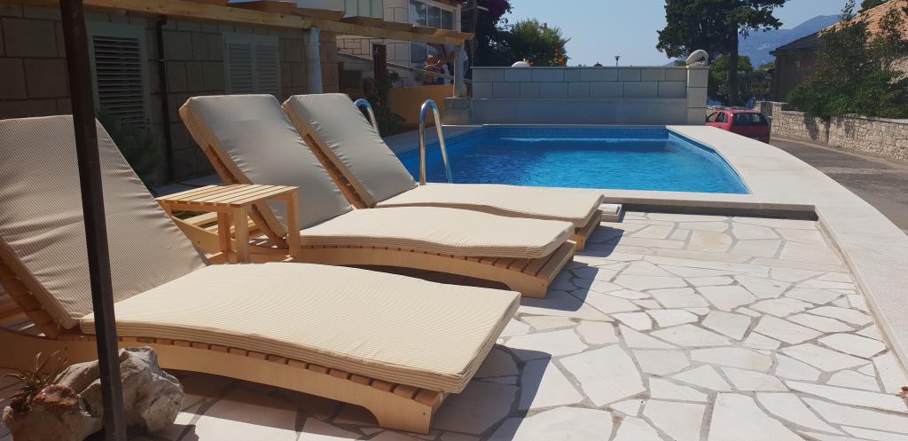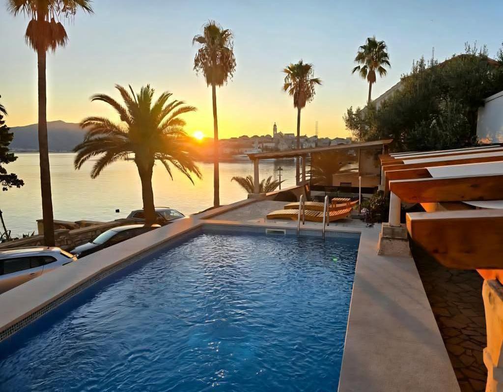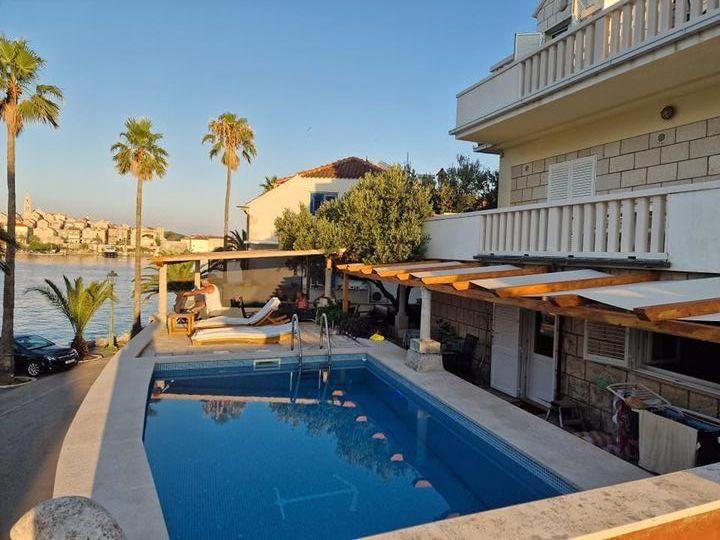 Apartament ID 759 o powierzchni 86 m². Luksusowo umeblowany i położony w pięknej, nadmorskiej części miasta Korčula. Apartament posiada własny basen, dwa duże tarasy i taras do opalania. Apartament oferuje absolutnie wszystko, czego potrzebujesz na wakacje. Dwie klimatyzatory, duża łazienka, dwa telewizory, przyjemna, komfortowa przestrzeń, dwa pokoje i własne miejsce parkingowe. Do centrum miasta jest zaledwie 5 minut spacerem, a do plaży 2 minuty. Grill na tarasie dla Twojej przyjemności kulinarnej. Apartament wyposażony jest w pralkę i suszarkę, zmywarkę, dwa ekspresy do kawy, tostery, sokowirówkę itp. W pełni i nowocześnie wyposażone apartamenty w spokojnej okolicy miasta Korčula, położone w pierwszym rzędzie do morza. Obiekt znajduje się 5 minut spacerem od centrum miasta, a plaża i parking znajdują się tuż przed nim. Apartamenty i pokoje ID 760 i ID 761 oraz pokoje ID 5589 i ID 5599 są luksusowe. Taras z tyłu również jest zadaszony pergolą i plandeką. Do dyspozycji gości jest własny parking. Parking dla pojazdów jest przeznaczony wyłącznie dla apartamentów.