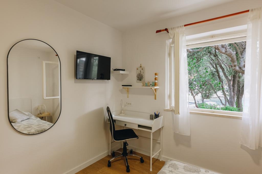 Apartament Dinko to prosty i wygodny mały dom na plaży, położony w cichej zatoce Žrnovska Banja, zaledwie kilka kroków do morza i całkowicie osłonięty przed widokiem przechodniów, otoczony gajami oliwnymi, cytrusami i ogródkiem warzywnym dla Was. Jeśli chcesz oderwać się od codzienności i odpocząć od wszystkiego, jesteś we właściwym miejscu! Błyskawicznie połączysz się z Dink, nadadzą Ci one wyjątkowej kojącej atmosfery i staną się Twoim drugim domem! Wyobraź sobie swoją pierwszą poranną kawę na tarasie... oglądasz krystalicznie czyste morze, słuchasz świergotu ptaków i świerszczy, wdychasz zapach pomarańczy, oliwek i aromatycznych ziół... Apartament składa się z w pełni wyposażonej nowoczesnej kuchni, 2 sypialnie, 2 toalety i łazienka, 2 przestronne tarasy z widokiem na morze oraz parking na 2 samochody. Klimatyzowany, nielimitowany internet, TV (kanały cyfrowe i satelitarne), grill. Idealny dla rodzin z dziećmi, par i przyjaciół. Przyjdź, oddaj się i ciesz się! Dinko czeka na Ciebie!