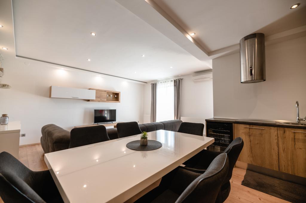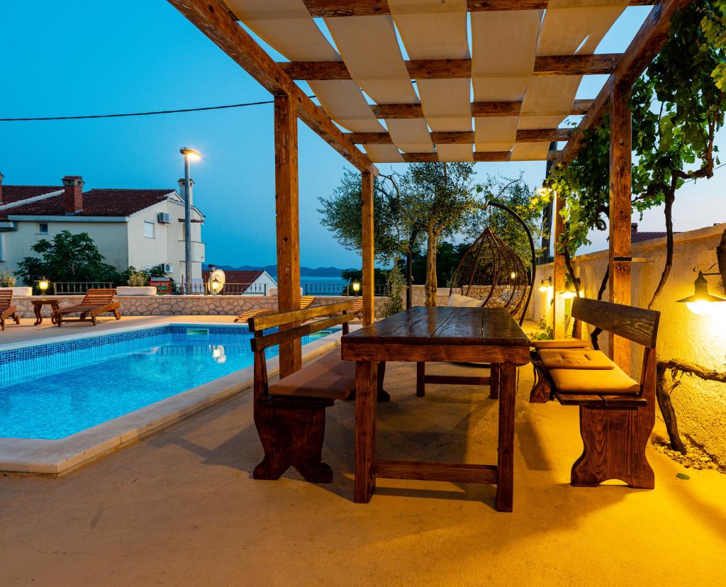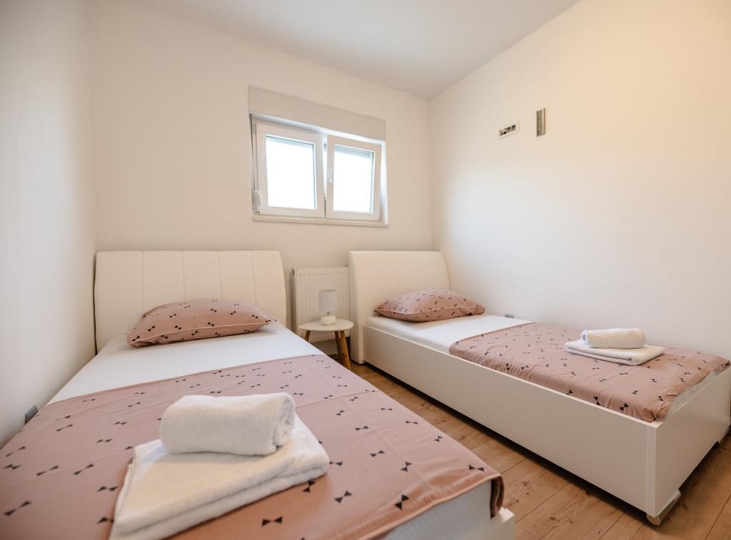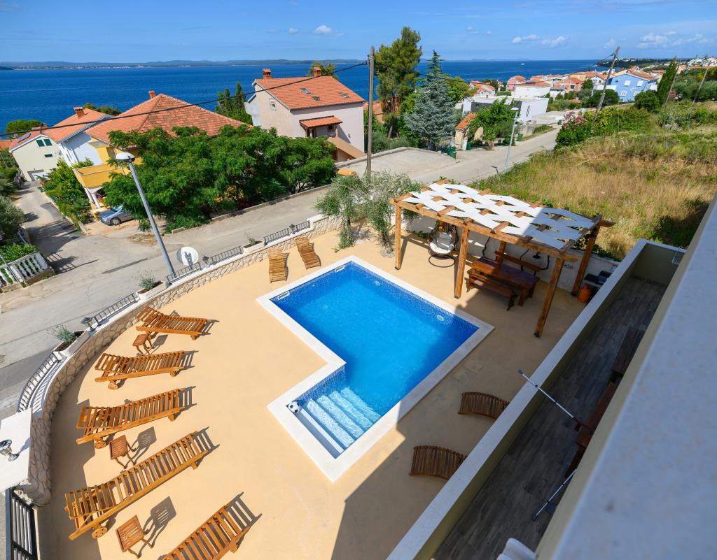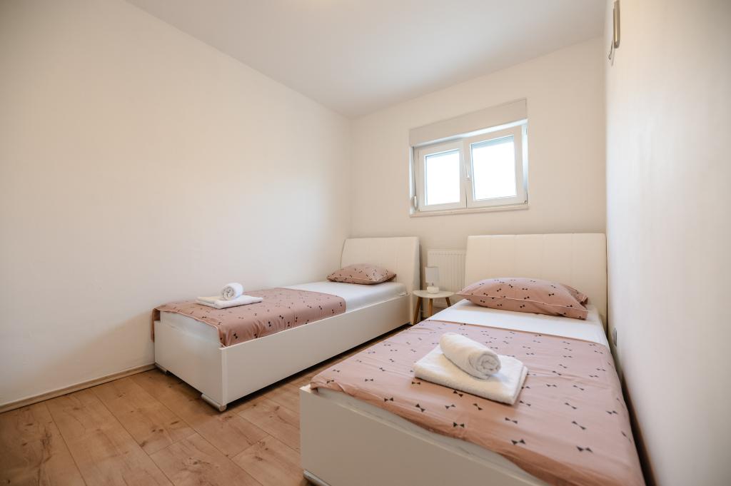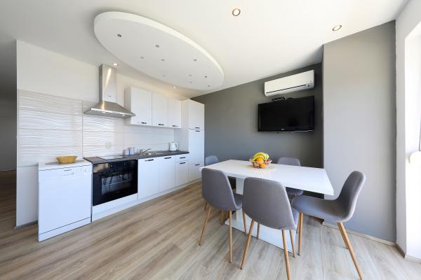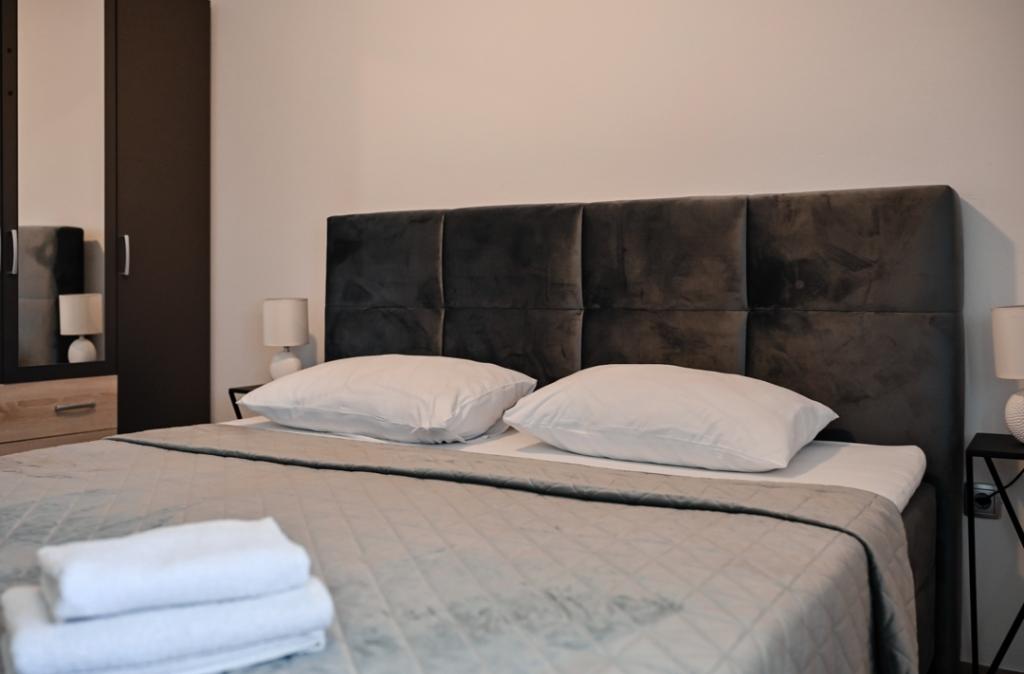 Witamy drodzy goście! Dla wszystkich, którzy kochają ciszę i spokój, oferujemy idealne kwatery prywatne, które zapewnią Państwu najwyższy komfort, przyjemny wypoczynek i poczucie własnego domu. Apartamenty M z pięknym widokiem na kanał Zadar i wyspy znajdują się w Kožinie. Kožino to miejscowość niedaleko Zadaru, tylko 8 km od starego centrum Zadaru (kościół św. Donata, Powitanie Słońca, główna ulica Zadaru Kalelarga, nabrzeże Zadaru, najpiękniejszy zachód słońca, ...) Jeden z apartamentów znajduje się na parterze, natomiast dwa pozostałe apartamenty znajdują się na drugim piętrze budynku z pięknym widokiem na morze i tarasem, na którym znajduje się basen. Apartamenty składają się z kuchni i jadalni, salonu, łazienki, toalety i sypialni. Każdy apartament posiada 2 sypialnie. Miejsca parkingowe przynależą do apartamentów. Na tarasie przy basenie znajduje się grill dostępny dla wszystkich gości oraz plac zabaw dla dzieci zlokalizowany na podwórku. Apartamenty są niedawno odnowione, w pełni nowoczesne i wyposażone,...